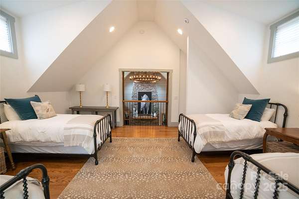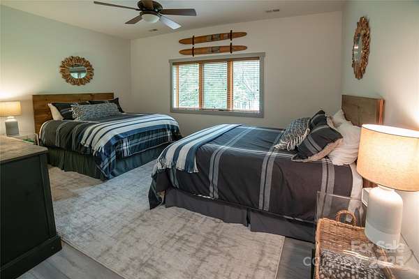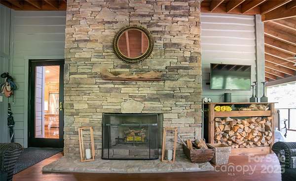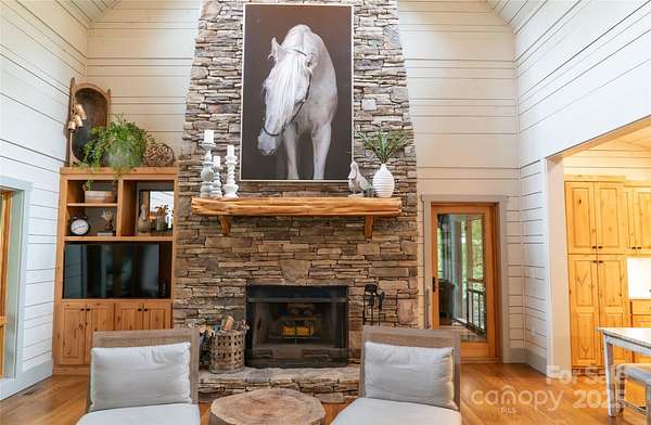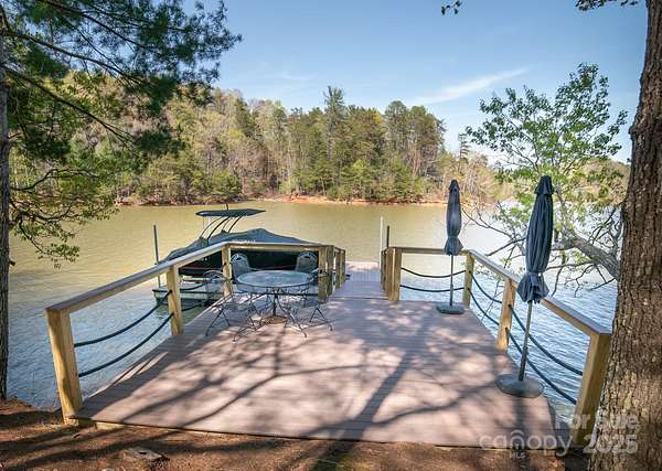 Exquisite Modern Lodge nestled on 9.86 private acres, one of a kind on pristine Lake James. With over 1200' of lake frontage, enjoy owning your own private pointe. A nature lovers paradise, watching deer and turkey then being lulled to sleep with the sounds of crickets, frogs and whippoorwills. This modern lodge boasts 4 spacious bedrooms, a sleeping loft overlooking the family room 3 full baths and 2 halfs, easily sleeping upwards of 16.The majestic family room features floor to ceiling stone fireplace with oversized windows for views of the lake. The kitchen is fully equipped for any want to be chef with all modern appliances.The downstairs area is ready for family games and relaxing TV time. Walk out to the spacious yard with large fire pit and views of the lake. Easy walk to the water to hop on your boat and explore Lake James. The most amazing part of this custom home is the screened in porch with stone fireplace. Summer,fall or winter it's the place for all to gather.