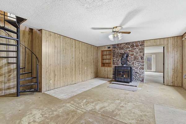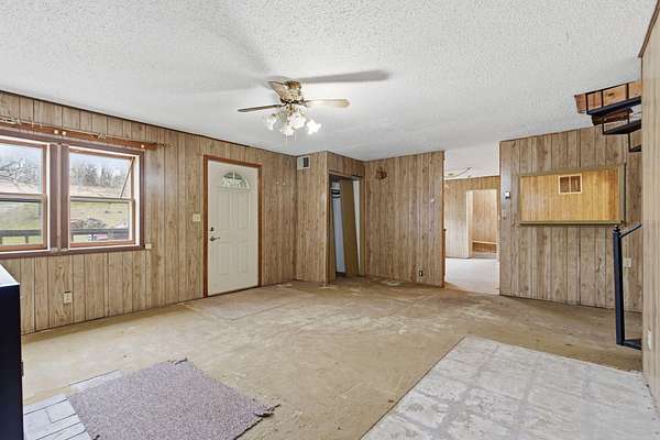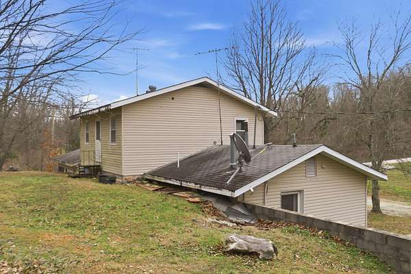 Discover peaceful country living on approximately 3+/- acres in Marionville, perfectly suited for a hobby farm with horses allowed. This unique earth-berm home offers natural insulation for year-round energy efficiency, durability, and a quiet, comfortable living environment.Step inside to a spacious living room with a cozy fireplace, ideal for relaxing evenings. To the right, a second living area provides flexible space for entertaining or everyday living, along with a 1-car garage that could easily be converted into a 4th bedroom. On the opposite side of the main level, enjoy an open kitchen and dining combination, with convenient access to the laundry room and half bath just beyond. Up the distinctive spiral staircase, you'll find three bedrooms and the recently remodeled main bathroom. Thanks to the earth-berm design, the upper-level back door opens directly to the backyard, creating easy outdoor access and a seamless connection to the land.Recent updates include a newer A/C unit and removed flooring--one less project for the next owner. Outside, the property truly shines with a beautiful barn featuring loft storage, a 2-foot concrete footer for added stability, and electricity, making it ideal for livestock, equipment, or workshop use. Enjoy beautiful country views and room to roam, garden, or raise animals.This home is being sold AS-IS