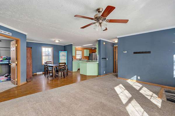 Here is an amazing opportunity to have your own place in the country! When you step inside it feels like you are home! Its incredibly spacious with 2 living rooms, 2 dining areas, 3 bedrooms, PLUS and office that could be a 4th bedroom! This home has been recently refreshed with paint on the cabinets and walls and new carpet! It has a large newer deck on the back, perfect for relaxing and looking out over the fields with no neighbors in sight! Its all yours, sitting on just under two acres! The land is mostly level, making it perfect for gardens, animals, a swimming pool, building a shop, or pretty much anything you can dream of. The large new storage shed stays with the property!This property will work for FHA, VA, and Conventional loans! Located just 30 minutes to Springfield! Don't miss out!