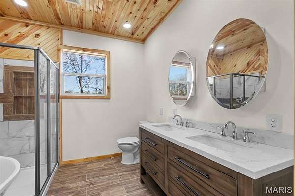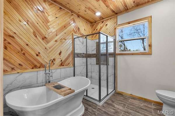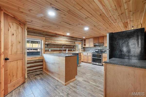 Welcome to a beautifully remodeled Country Cabin, where the charm of an old log structure has been combined with the rustic elegance of a spacious addition to make this cabin comfortable, cozy, and a great home for anyone who loves country living at its finest! The rustic interior blends right into the natural setting of the cabin, which sits on 4.56 acres, complete with a pond for fishing and recreational enjoyment. A deck on the east side of the home, is perfect for those summer BBQ's and for taking advantage of the breathtaking views provided by this peaceful valley. Entering through the Mud Room, you'll find lots of space for storage and a place to leave your boots or shoes before entering into the beautifully remodeled eat-in kitchen. New Stainless appliances compliment the room, which offers ceramic tile flooring, a combination of open shelves and cabinetry, plus a corner pantry for great functionality. Just down from the kitchen, you'll find the Family Room which boasts two of the original log walls, open beamed ceiling and lots of natural woods to make the room feel warm and inviting. Just down from the Family Room is the spacious Living Room with vaulted ceilings and the same tile flooring that's used throughout the house to give the space continuity. Off the living room, is the Master Bedroom and Bath. The Bathroom offers both a walk-in shower and a glorious soaking tub, the perfect way to relax after a busy day! From the Family Room, you can enter the Second Bedroom or climb the open stairway to the Second Floor where the fully carpeted Third Bedroom will be found. Just off the kitchen, you walk into the Second Full Bathroom, which is also home to the Laundry facilities. Everything about this home is fresh, and warm, and inviting! Just off the deck to the east of the home, you find a nice Garage, which could double as a Workshop. Also on the property, there is Covered Parking for one car, plus ample additional parking on the Circle Drive. Whether you're looking for a weekend getaway spot, or a permanent residence, this Country Cabin has much to offer, including recreational fishing and hunting. The pond brings in whitetail deer, turkey and other forest animals daily - such a wonderful sight!
