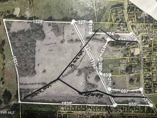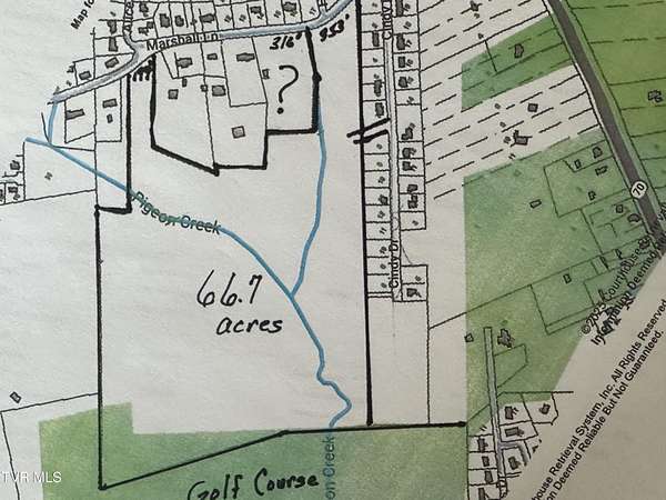 LOCATION, LOCATION, LOCATION! 66.7 ACRES in the City of Greeneville - Prime Development Opportunity Don't miss this rare opportunity to own 66.7 acres of highly desirable land inside the city limits of Greeneville, perfectly situated on Marshall Lane, between Asheville Highway (Hwy 70) and Newport Road (Hwy 321). This property offers three access points - two from Marshall Lane and one from Cindy Drive providing excellent development flexibility. At the rear of the property, you find 1,631 feet of boundary with the Andrew Johnson Golf Course, offering scenic views and added appeal for future residential or recreational development. Pigeon Creek flows through the center of the land and continues through the golf course, adding natural beauty and a unique feature for any project. The topography is primarily flat, with some gentle slopes and wooded areas that provide privacy and character and the City Sewer line goes through the land for easy hook-up, ideal for multiple building sites, whether for a private estate, residential subdivision, or mixed-use development. This is a unique opportunity to invest in one of Greeneville's most promising and well-located parcels - with utilities at the street, access to major roads, and endless potential. Looking for more land or road frontage? An additional 4.09 acres with 316 feet of road frontage is available to purchase that adjoins the property, 330 Marshall Lane, 2 lots). On Cindy Drive there is another right-of-way onto this land. It is between lot 7&8 and there is a fire hydrant on Cindy Dr. where the right-of-way entrance is. Also you have a 6'' water line that goes through on Marshall Lane.
