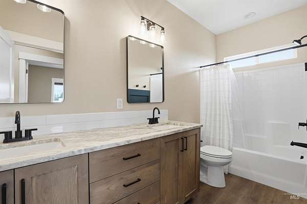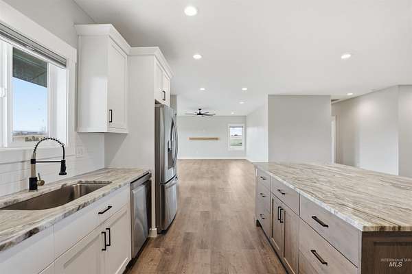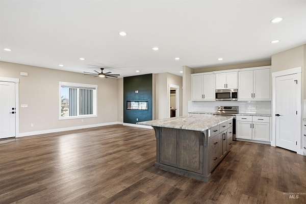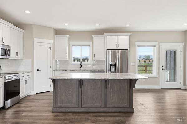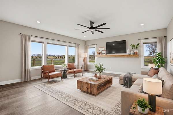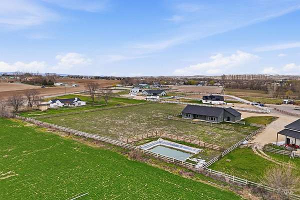 Peaceful acreage living in Idaho's wine country on 2.5 acres near the Snake River with views of Lizard Butte. No HOA & fully fenced with multiple gates, offering room for animals and a shop. This like new 3 bedroom, 2.5 bath single level home has an open layout filled with natural light & quality finishes throughout. The kitchen features custom cabinetry and granite countertops. A large island with additional storage cabinets & a walk in pantry add both function & convenience. The space opens to the dining and living areas, creating an open layout perfect for entertaining. Electric fireplaces in both the dining room and primary suite add warmth and character. The primary suite includes a generous walk-in closet and direct access to the back patio, creating a comfortable place to step outside & enjoy the peaceful setting. The property features an irrigation pond & fully fenced acreage with custom wire & wood fencing & multiple gates for easy access to the pasture, pond, and yard. The extra deep three car garage provides plenty of space for vehicles, storage, & toys. Additional features include a high efficiency HVAC system, a new water filtration & softener system, along with washer, dryer, and refrigerator. Enjoy views of Lizard Butte & the Owyhee Mountains while having the space and flexibility that acreage living provides.