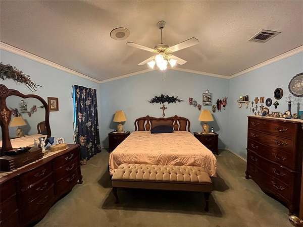 Country living at its best! This 3-bedroom 2-bathroom home offers 2609 square feet of living space. The home features a metal roof, dryvit exterior, and a slab foundation. It has an attached 2-car carport and a detached 2-car carport providing convenient covered parking and easy access to the home. Nice metal shop and covered parking area for equipment. The land has a nice mixture of open to woods, Christmas creek meanders through the property, multiple stock tanks for the wildlife and livestock, ideal for anyone looking for a working ranch, weekend getaway, or full-time country residence. Large live oak trees surround the home creating a peaceful setting, while the long driveway leads you into your own private retreat!