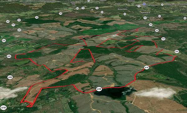 Currently leased to a hunt club, the property is already managed for recreation and could continue to generate income if desired. Expansive views of Carter's Mountain, Monticello, and nearby wineries highlight the scenic value of this tract, while its borders adjoin other large "open space" properties, helping ensure lasting privacy and protection against future development.