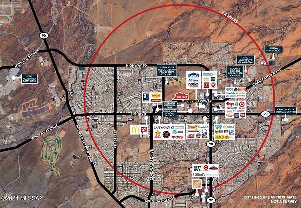 This +/- 33-acre parcel in rapidly growing Sierra Vista, Arizona, is zoned for multifamily use and perfectly positioned for a variety of residential or mixed-use projects. Located within walking distance of Cochise College and the University of Arizona's Sierra Vista campus, it offers an outstanding student housing opportunity. The property sits directly across from Veteran's Memorial Park and the Sierra Vista Aquatic Center, and is just minutes from Fort Huachuca Army Base. Flat, shovel-ready, and in an infill location, the site enjoys approximately 1,900 feet of frontage along a fully signalized intersection. A major retail power center-featuring Lowe's, Walmart, and Target-is less than half a mile away, providing convenient amenities for future residents. The zoning allows for multifamily housing, townhomes, single-family residences, elder care facilities, or even small-scale commercial development, with the option to rezone for broader commercial uses. Surrounded by state-owned land and supported by a development-friendly community, this property represents a rare opportunity for investors and builders alike. Contact the broker for full details.