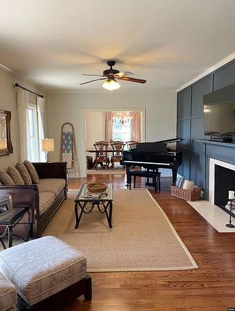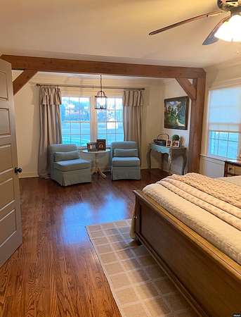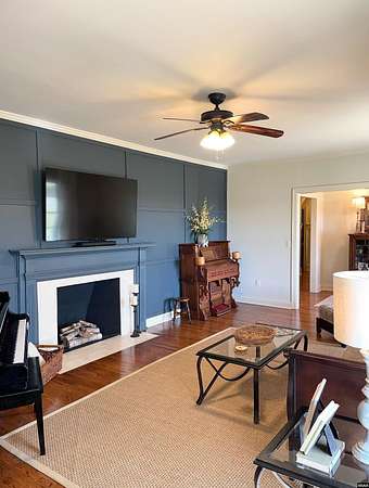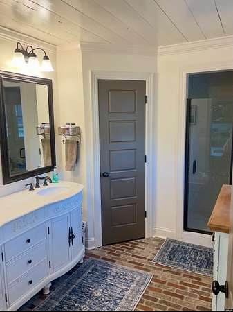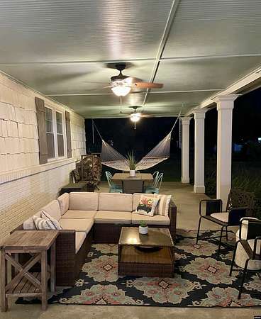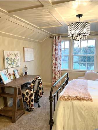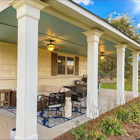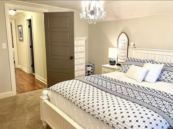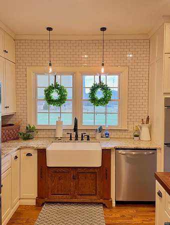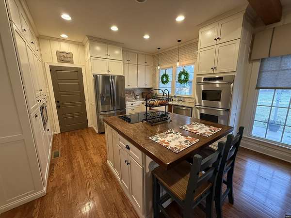 Est $3,088/moStunning, fully remodeled home on approx 2+- acres inside city limits. One-of-a-kind property blends high-end finishes w/warm farmhouse charm & thoughtful custom design throughout. Spacious den flows into gorgeous kitchen, featuring large island, double oven, smooth cooktop, built-in microwave & more! Farmhouse sink sits beneath double windows & is accented w/elegant pendant lighting. Custom cabinetry & subway tile backsplash frame space perfectly. Primary suite on main level w/custom double walk-in closet.