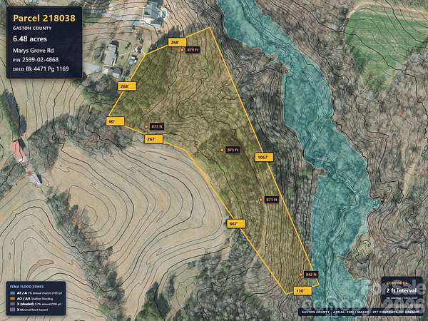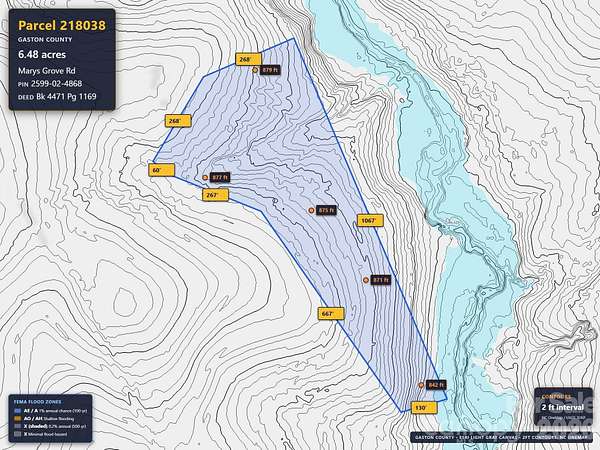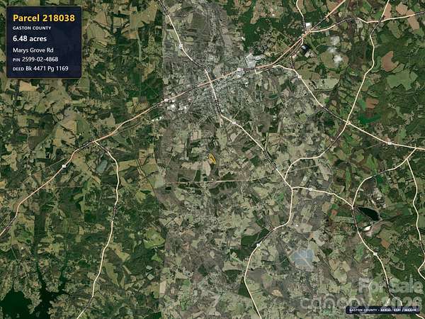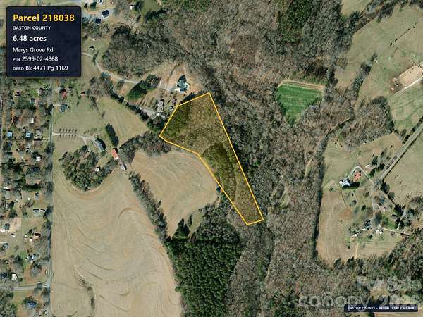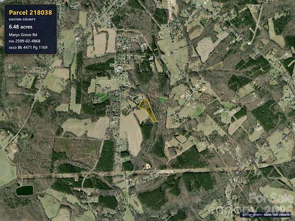 Est $726/moThis 6.48 acres is located in rural Gaston County, just off Mary's Grove Road. There is an easement from Mary's Grove Road to the subject property. The right-of-way is not cleared to the property. It is clear a portion of the way from Mary's Grove, but not to the subject property. Well and septic are required. No permits or soil testing have been done. Mary's Grove Road is a paved state-maintained road. The right-of-way drive is private and privately maintained with gravel.