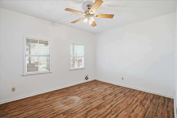 Large bedrooms with walk-in closets and ceiling fans, including a safe room with steel-framed door