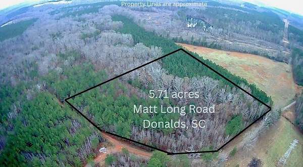 5.71 Acres - Private, Wooded, and Ready for Your Vision: Discover the perfect blend of privacy, natural beauty, and convenience on this 5.71-acre wooded homesite. Nestled in a peaceful rural setting, this property features a gentle slope, ideal for building your dream home, installing a mobile home, or creating a small hobby farm. Property Highlights: 5.71 acres of mature trees and natural landscape; Rural, private setting with abundant wildlife and serenity; Gentle slope suitable for a walkout basement or elevated homesite; Mobile homes allowed - flexible options for primary residence or investment; Horses welcome - plenty of space for pasture or stables; No HOA ; Great location - just 25 minutes to Greenwood and 35 minutes to Greenville; Why You'll Love It: This acreage offers the perfect balance of seclusion and accessibility. Whether you're looking to build, bring in a manufactured home, or establish a mini farm, the unrestricted nature of the land gives you freedom to create the lifestyle you want. Property is across the street from the corner MATT LONG Rd and Stonegate Farm Road.