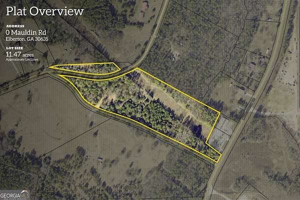 This 11.47-acre property is located at Mauldin Rd in Elberton, GA 30635. The property is available for sale for $95,000 with a price per acre of $8,282.