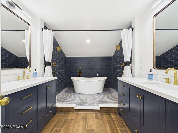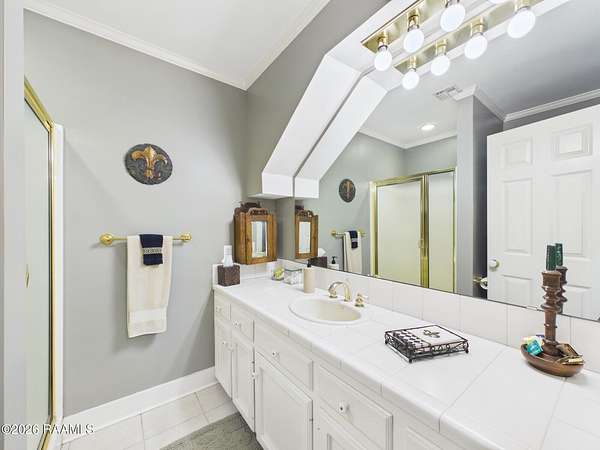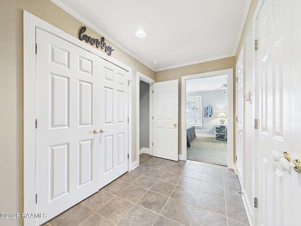 - Attic Access, Built-In Features, Built-Ins, Crown Molding, Double Vanity, Multi-Head Shower, Primary Bath, Soaking Tub, Standalone Tub, Tile Counters, Walk-In Closet(s)