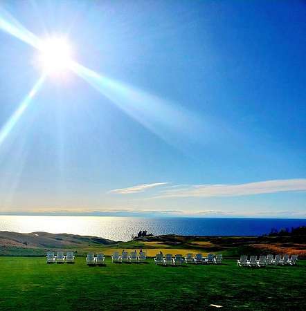 M22 North to Onekama, then 5 miles North to Arcadia Bluffs Golf Club, Next road is Bischoff, turn left and follow to Maxey