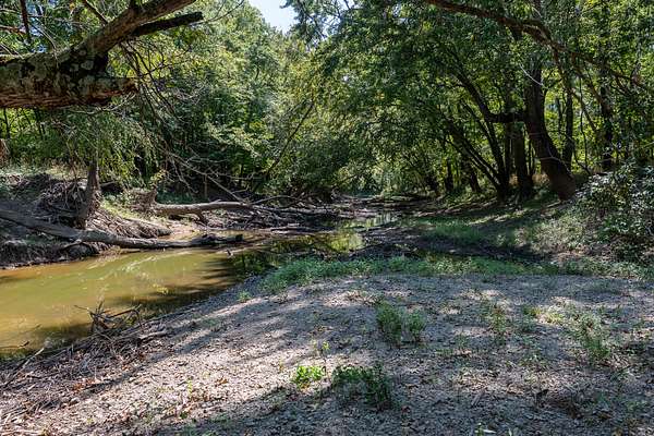 While mostly flat, this property includes gently rolling terrain near Little Muddy Creek that runs throughout. The majority of the land is part of a revenue generating Conservation Reserve Program (CRP) filtration program, planted with a blend of oaks and walnuts, enhancing wildlife habitat and conservation efforts. The property also features native grasses and wildflowers, with patches of dense woodlands providing ideal cover for deer and turkey, making it perfect for hunting and outdoor activities.