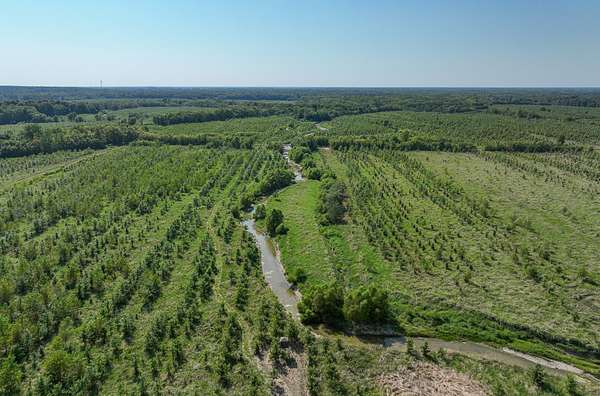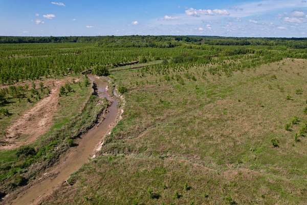 While mostly flat, this property includes gently rolling terrain near Little Muddy Creek that runs on the east side. The land that is part a Conservation Reserve Program (CRP) filtration program is planted with a blend of oaks and walnuts, enhancing wildlife habitat and conservation efforts. The property also features native grasses and wildflowers, with patches of dense woodlands providing ideal cover for deer and turkey, making it perfect for hunting and outdoor activities.