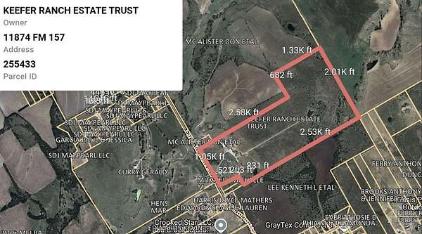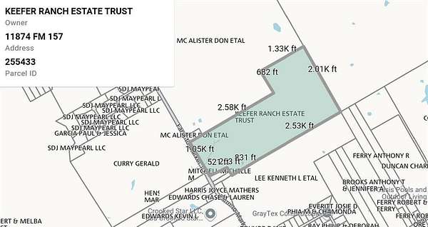 Generational Living with privacy and convenience at your fingertips! Rare opportunity to own 135 acres in the heart of Ellis County--a multi-use ranch with outstanding development, agricultural, and multi-residential potential. Keefer Ranch has been in the same family for generations and offers a blend of open pasture, mature trees, and multiple water features, all just minutes from Maypearl and within 45 minutes of Dallas-Fort Worth. The property includes three separate residences (1,680 sqft built 2012, 3,140 sqft built 1997, and 1,500 sqft built 2015), each with covered porches and private views. Ideal for multi-family living, ranch staff, or rental income. Additional improvements include a 72x40 barn with 6 stalls, tack room, and wash rack, plus an 8,000+ sqft workshop with electricity and water--perfect for equipment, storage, or commercial use. Land features include three ponds (two stocked), cross-fencing for livestock, an on-site water well, and 1,100 ft of road frontage along FM 157. The rear pond spans over an acre and reaches depths of 25+ feet. Mountain Peak SUD provides water service. With quick access to I-35, I-20, and DFW Airport, this location offers true rural privacy without sacrificing convenience. Whether you're seeking a working ranch, long-term investment, or a prime development opportunity, Keefer Ranch delivers unmatched versatility and potential.
