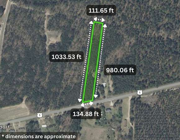 This 2.6-acre property in Chesterfield County, South Carolina offers buildable residential potential with paved highway frontage on US Route 1, wooded level terrain, and General Development zoning allowing flexible housing and recreational uses near McBee.