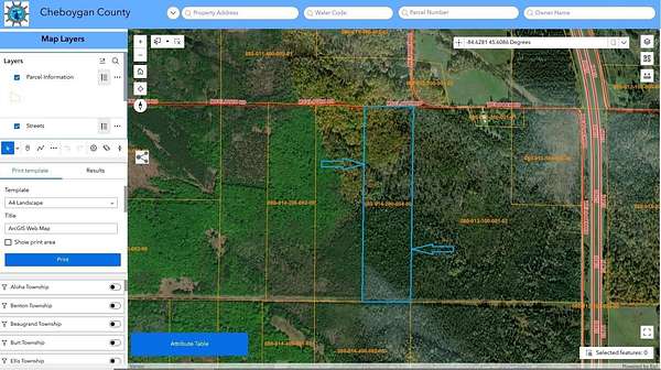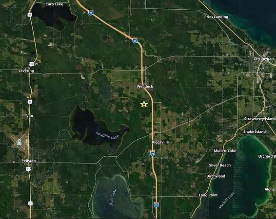 Here is 40 wooded acres in NW Cheboygan County near Levering. The property is located just West of I-75 off of Weadock Road onto McClouth Road, which appears to be a seasonal/private road that is not maintained by the County in the winter. This parcel consists of both high and low ground and is completely wooded. The high ground contains a nice mixture of hardwoods, pines, and a few cedar trees. The low ground is a mixture of swampy areas, thick brush, and cover for the wildlife. The land is undeveloped and has primarily been used for hunting/recreational activities. There are several great spots in the high ground to build a small home and/or cabin to hang out in while enjoying this northern lower peninsula property! Located just off the highway, the property is easily accessible and is very close to several large inland lakes, including both Mullett and Burt Lake, plus just a short drive North on I-75 and you can spend time at Mackinaw City or go across the Mighty Mack .... and enjoy the Upper Peninsula!! If you have been looking for that UP NORTH wooded parcel that is off the beaten path, yet close to many different towns, lakes, and attractions, don't hesitate and give me a call today for your private tour! Maps contained on our sites are there to simply depict the overall layout or shape of a given property and show what it looks like from an aerial view. These maps are neither a legally recorded map, nor any type of a legal survey and should never be used as such. Also "Acreage" amounts are displayed as according to the information we have obtained through local government and are in no way guaranteed or warranted to be exact.