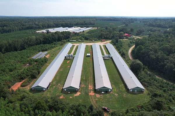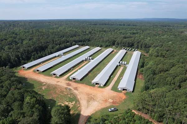 Haddock Broiler Farm is a rare opportunity to purchase 16 broiler houses near the town of Barnesville, Georgia in Lamar County. The farm has 16 40x500 houses. Five houses built in 2007, four houses built in 2001, six houses built in 1995, and one house built in 2022. This farm grows for Perdue raising a 35 day old bird on 5.5 flocks per year. The farm sits on 160+/- acres. There is a large 32x48 shop with an area that could easily be converted into living quarters complete with HVAC and heat. The gross annual income has been around $800,000. This farm recently received a raise. A noteworthy feature of this farm is all 16 houses are solar powered keeping the energy cost low.