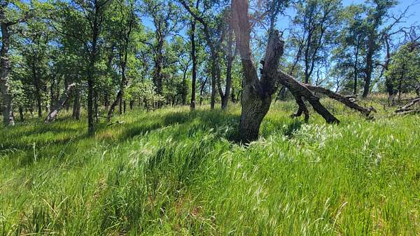 Easy access, usable land, and a standout potential building site--this property checks the boxes that are hard to find in rural acreage. A natural balance of blue oaks and open ground creates a park-like setting with minimal brush, making the land feel both inviting and functional from day one. Gently rolling terrain adds depth and privacy without sacrificing usability, while seasonal creeks weave through the property and flow beneath the paved road, bringing life and movement to the landscape. A rail line located across McCoy Road sees occasional train activity and contributes to the property's character and provides a defined boundary. Sitting at approximately 600 feet in elevation, the setting offers a relatively snow-free environment surrounded by scenic views.