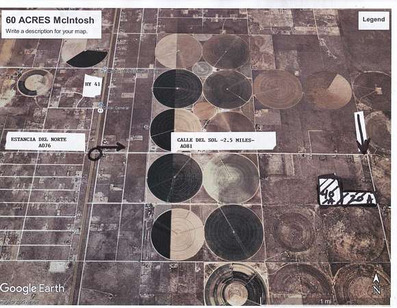 Take HY41 South from Moriarty towards McIntosh to MM 21. Look for Dollar General Store on the right. Take next left EAST A081 (Calle Del Sol) EAST on A081 Calle Del Sol 2.5 mi. end- to bend right A146 Mulberry. Go right (south) about 2500' (.45 MI) to the 20 AC on your RIGHT. Just north of old empty house . The 40 AC is due WEST of the 20 AC.SEE SAT LOCATION PICS in PHOTOS .