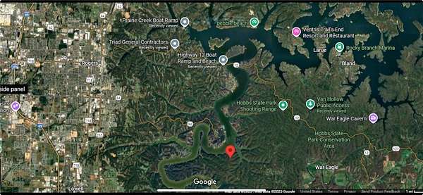 A GEM of a property with a lakefront view of Horseshoe Bend that is located right across the lake from you and it is mere minutes from Hobbs State Park. Beaver Lake boat drop-ins at the HWY 12 boat landing and the Prairie Creek Marina about 20 minutes away. This gorgeous property has around 5 acres and part of it already has a cleared area ready for building. If privacy is what you're after, all the mature trees can surround you or clear it to enjoy the beautiful view. Less than 30 minutes to downtown Rogers. This property has a lot of potential! A septic permit has already been approved and is on file. The Seller is also a builder and can work with a new owner to build a home with their plans or his. Buyer to verify utilities.