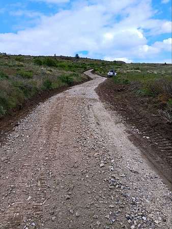 The property itself is accessible all the way up the mountain by our private road which intersects with McCaughlin Canyon Road. Check our driving directions and photos for pictures of the gate and survey. We have installed a circular turnaround pad and driveway directly onto the property where conditions are best for parking, cabin installation and a view over the town. You can drive there by 2WD during the Spring, Summer and Fall. In heavy rain seasons or Winter, we recommend 4WD just in case for seasonal mud and snow. In Heavy Snow conditions we do not recommend driving at all, use a snowmobile or walk. Sections of the road that experience the most annual wear and tear have been graveled; overall road conditions are good. The road is generally at least 6' wide all the way to the top and we have been able to successfully haul cabins and heavy trucks all the way up.