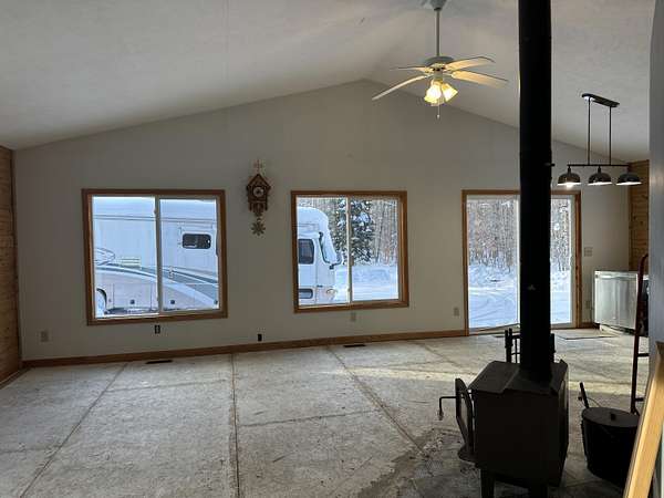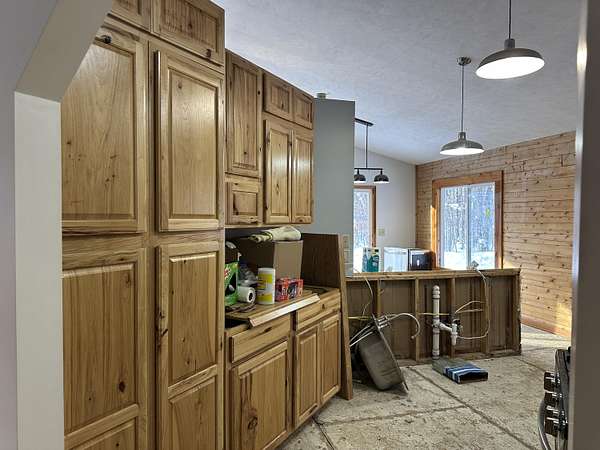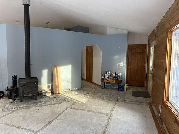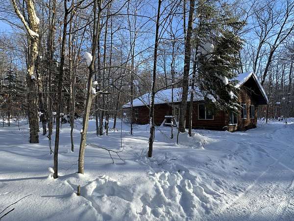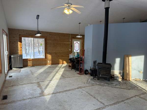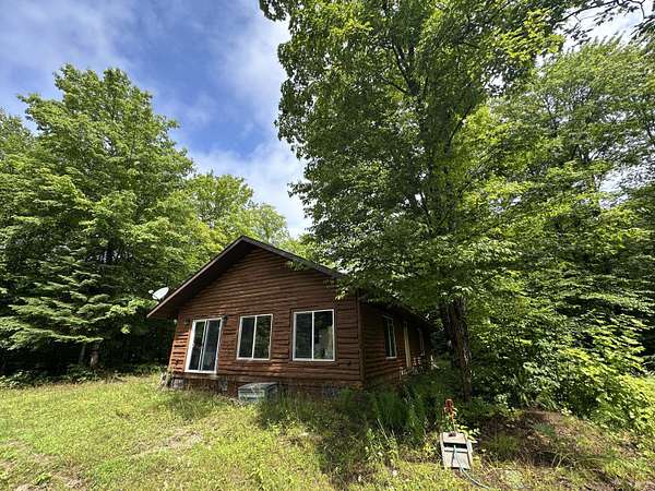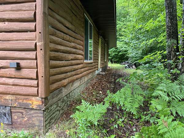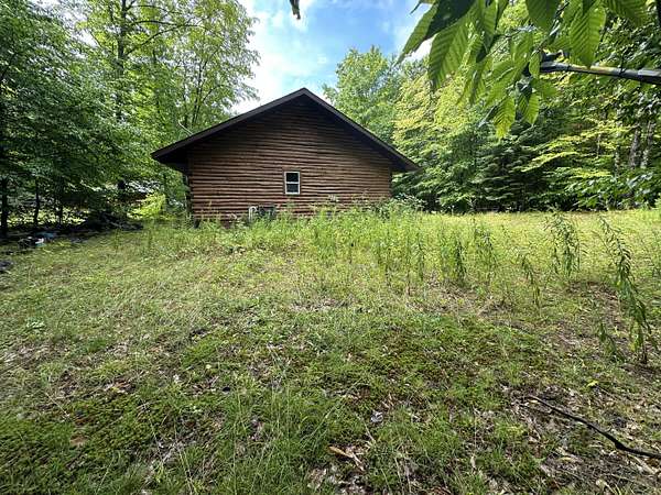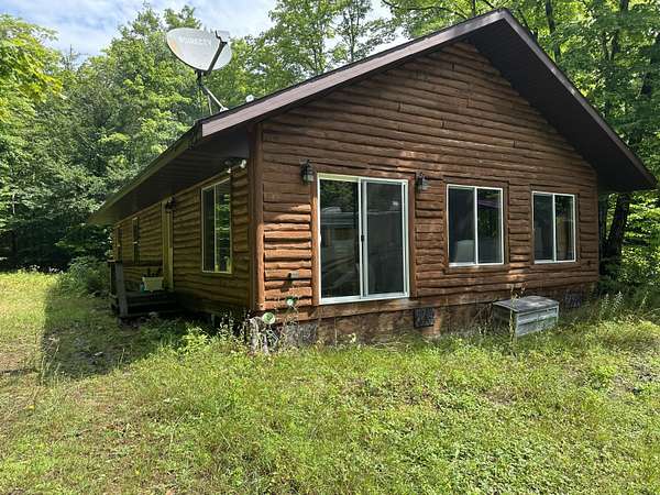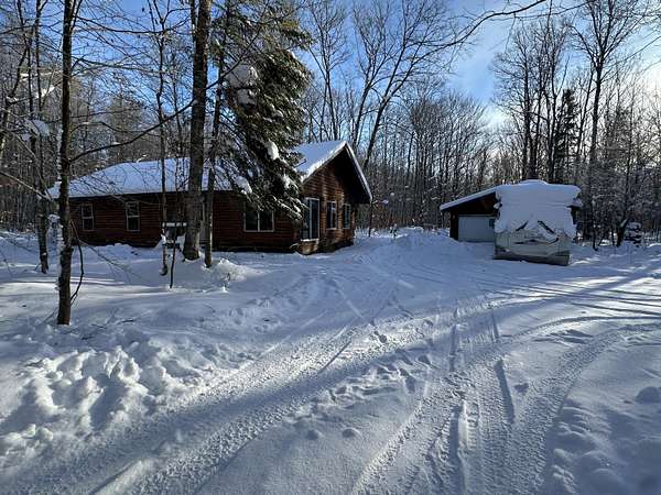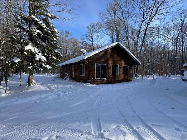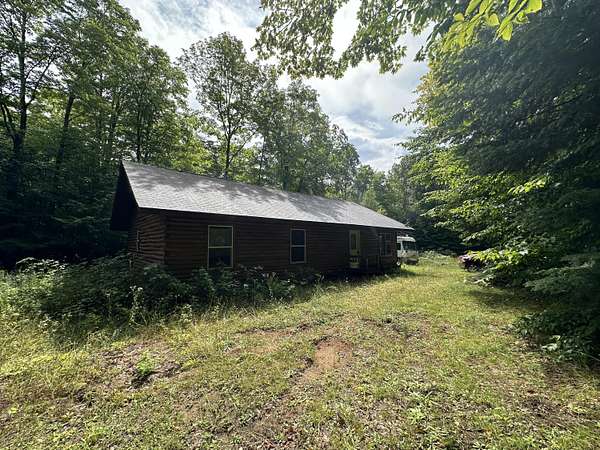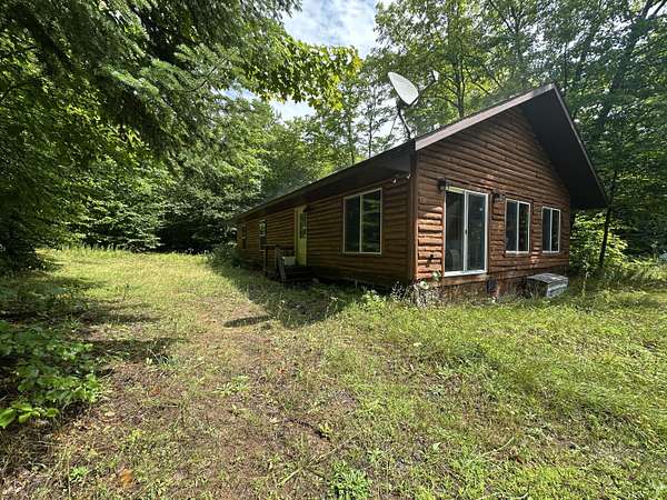 Discover peaceful country living on 10 wooded acres with this log-sided ranch home. Features include 3 bedrooms, 2 bathrooms, and a spacious primary suite with a walk-in closet and private bath. A two-car detached garage offers ample storage, and a new furnace installed in November 2025 provides added peace of mind. This property is suitable as a year-round residence, vacation getaway, or investment opportunity.The home has a bright, open layout and is ready for finishing touches. A recent pipe burst was fully repaired; however, the flooring has been removed throughout, and the kitchen requires a new sink cabinet. Seller is offering concessions toward the replacement of flooring and cabinetry.