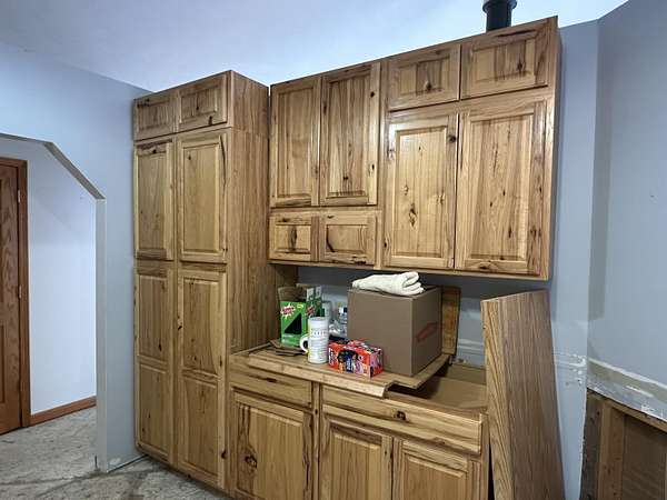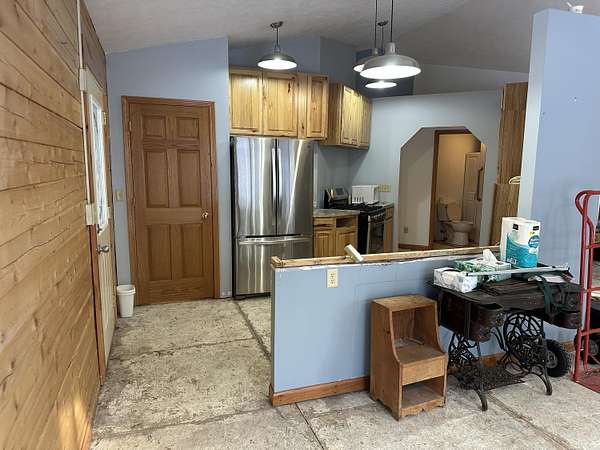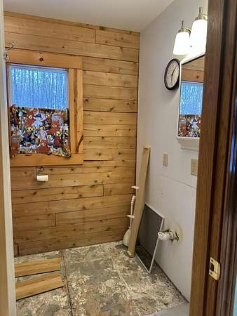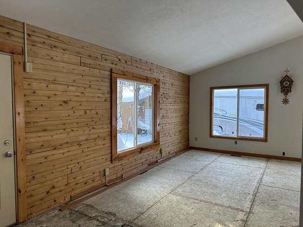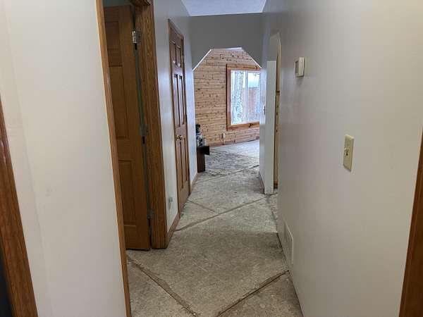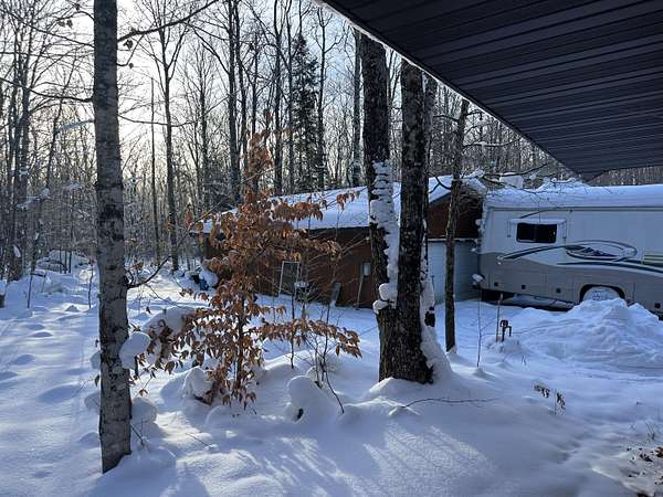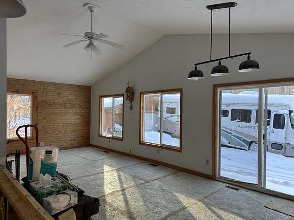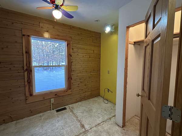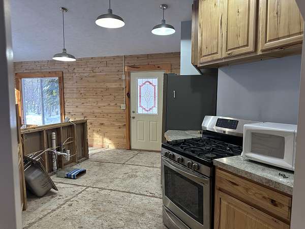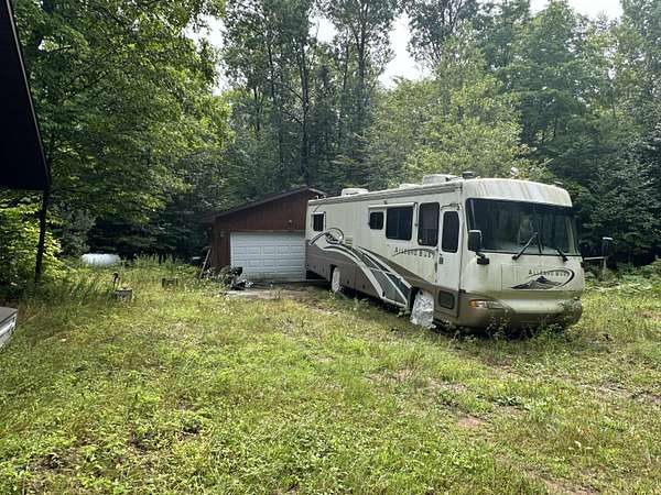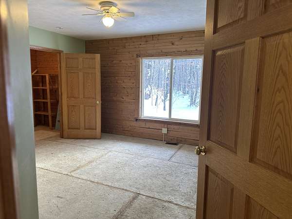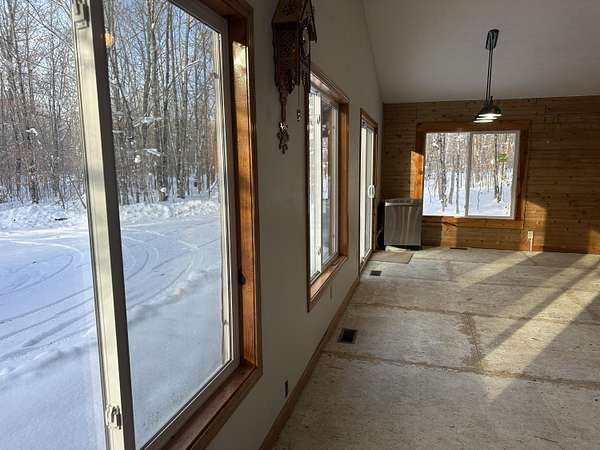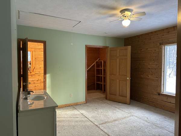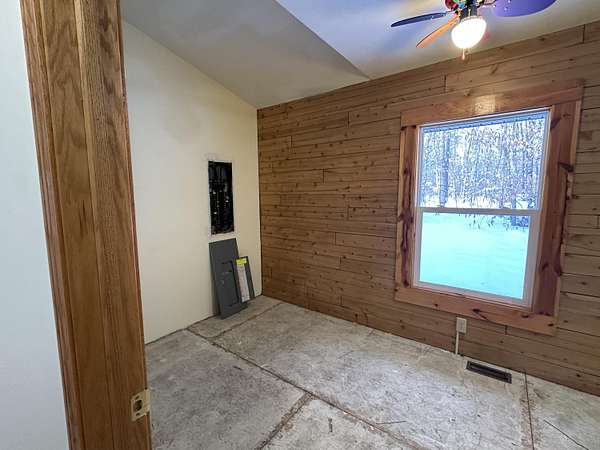 Discover peaceful country living on 10 wooded acres with this log-sided ranch home. Features include 3 bedrooms, 2 bathrooms, and a spacious primary suite with a walk-in closet and private bath. A two-car detached garage offers ample storage, and a new furnace installed in November 2025 provides added peace of mind. This property is suitable as a year-round residence, vacation getaway, or investment opportunity.The home has a bright, open layout and is ready for finishing touches. A recent pipe burst was fully repaired; however, the flooring has been removed throughout, and the kitchen requires a new sink cabinet. Seller is offering concessions toward the replacement of flooring and cabinetry.