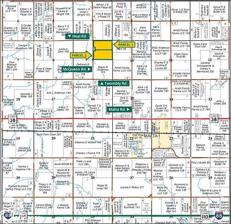 From Malta: Go west on IL-38 for 0.7 miles, then north on Malta Rd. for 1 mile, then west on Twombly Rd. for 1 mile, and then north on McQueen Rd. for 0.9 miles. Property is located on the east side of the road.