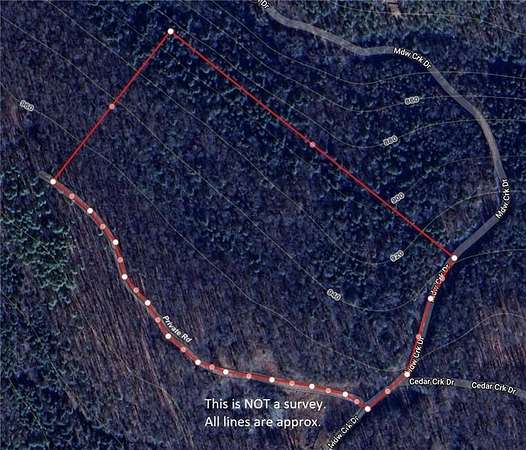 Est $728/moNice level building site on 12 Acres with large trees and NO Restrictions. This is must see if you are looking for a pretty wooded spot to build.