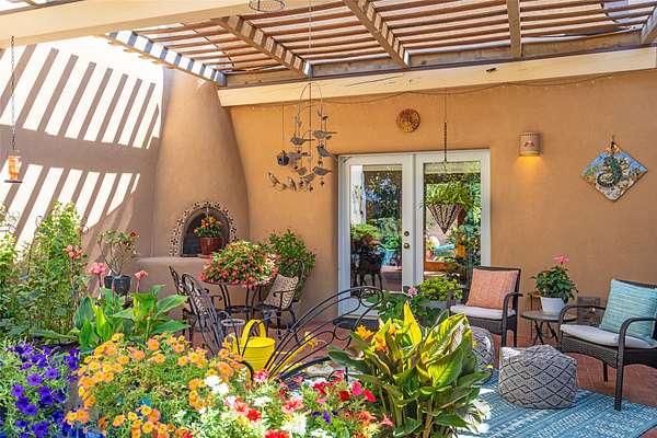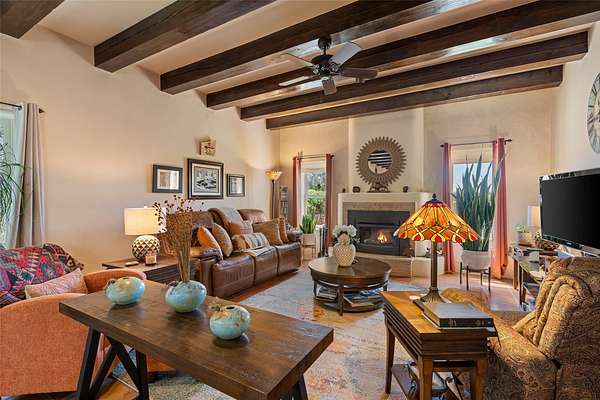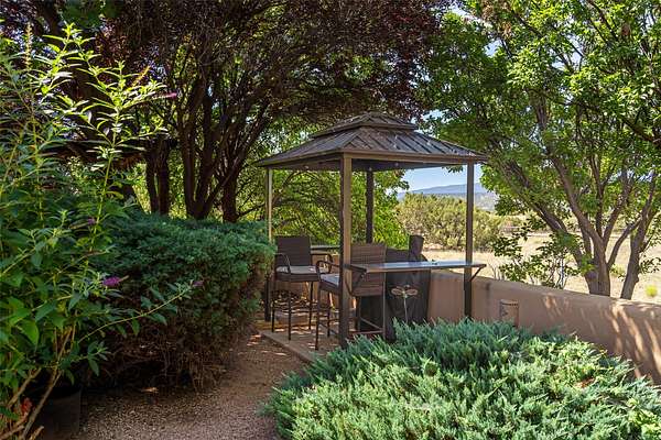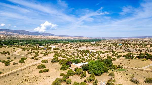 42 Private Drive 1613B is located in the Mesa de Medanales Subdivision on a gentle mesa above the Chama River Valley. The setting offers open views in all directions, with primary views toward the Jemez Mountains and the Sangre de Cristo Mountains. Mature trees and established landscaping surround the home, reflecting years of careful gardening and creating privacy and shade that make the property comfortable year round. A motorized gate is located at the entrance to the property. The home is an adobe constructed, two bedroom, two bath pueblo style residence with exposed beams and Southwest finishes throughout. Very few homes in New Mexico are currently constructed using traditional adobe. Many long time adobe homeowners consistently describe these homes as having a solid, quiet feel that is noticeably different from modern construction. The kitchen includes stainless steel appliances. A separate office provides additional flexible space. Heating is provided by radiant in floor heat, with a wood burning insert in the living room. The west facing patio includes a shade ramada, brick flooring, and a wood burning kiva fireplace. Recent updates include a new roof, new stucco, a new well pump, and a recently serviced septic system. The property consists of five acres and includes a three car garage. The location offers a short drive to Abiquiu and an easy commute to Espanola, Los Alamos, or Santa Fe. Additional Photos available upon request.