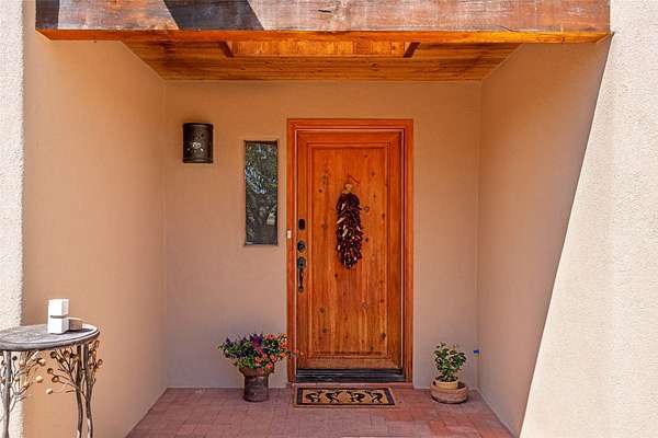 Ideally located for an easy commute to Espanola, Los Alamos and Santa Fe, this classic New Mexico-style home in the Mesa's de Medanales subdivision with No HOA! offers timeless Southwestern character, sweeping mountain views, and exceptional indoor-outdoor living. Set on five peaceful acres with horses welcome and surrounded by open vistas in every direction, the property provides an ideal balance of privacy, space, and convenience just minutes from Abiquiu Lake, national forest, and Ojo Caliente Mineral Springs and Spa. At just under 4,000 square feet this mostly single level home features three spacious ensuite bedrooms, a fourth bedroom and a fourth bathroom, making it well suited for multi-generational living, guests, or flexible lifestyle needs. The main-level fourth bedroom is a large, light-filled space complete with a wood stove and cedar closet, offering excellent versatility as a guest suite, studio, or secondary living area. Throughout the home, classic Southwestern details create warmth and authenticity, including brick floors, beamed ceilings, nichos, radiant heat, multiple wood stoves, and three traditional kiva fireplaces. A generous eat-in kitchen serves as the heart of the home and opens to a formal dining room, while a dedicated office or flex space supports remote work, hobbies, or creative pursuits. All bathrooms have been tastefully remodeled with custom finishes and walk-in showers, enhancing both comfort and luxury. Outdoor living is a true highlight, with multiple serene courtyards and expansive exterior spaces designed for year-round enjoyment. A substantial covered portal with a traditional kiva fireplace invites relaxing evenings, entertaining, or simply taking in the remarkable high-desert surroundings. Recent updates add peace of mind and modern convenience, including remodeled bathrooms throughout, new stucco, updated electrical and lighting, fresh driveway gravel, security system and a water filtration and softener system.