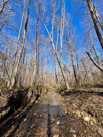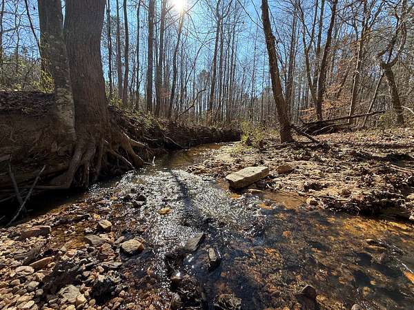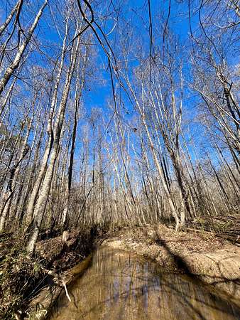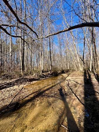 The property is covered in a strong mix of mature hardwoods and pines, creating a shaded, scenic landscape with excellent privacy. A picturesque pond adds to the appeal, while Maple Branch flows through the tract, providing natural water features and a peaceful backdrop for the property.