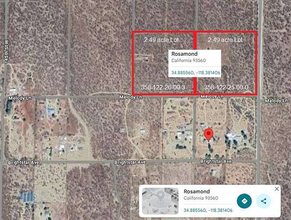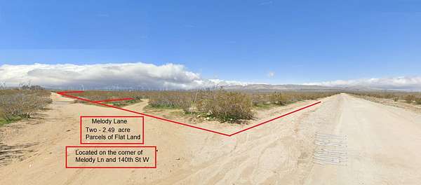 Drive West on Rosamond Blvd and turn right on 140th St West to Melody Ln. GPS Coordinates: 34.885516, -118.381420