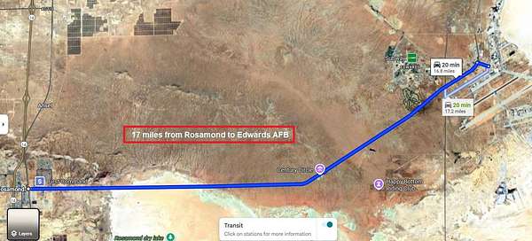 Est $112/moLocated in the Antelope Valley Solar Grid area of Rosamond CA about 17 miles from Edwards Air Force Base. Land is flat and have the view of mountains in the background. Great area for Horse property and Recreation Vehicles.