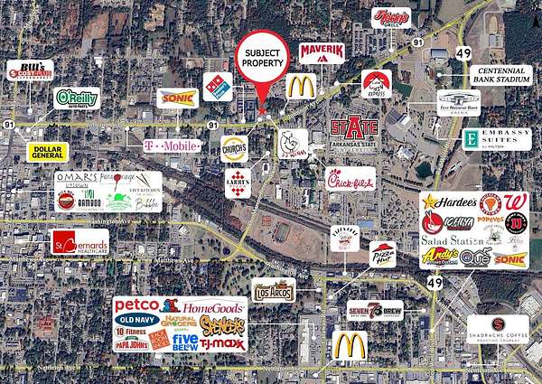 Est $8,647/moWelcome to Market 3.67 +/- Acres on Melrose Street and Russell Drive in Jonesboro, Arkansas. Golden Opportunity Knocks. Commercial Property zoned C-3 situated on 3.67 +/- acres with a 7 Unit Retail Strip Center and .65 +/- acre lot available to purchase separately. Located across the street from Arkansas State University and near Northeast Arkansas Baptist Memorial Hospital, Jonesboro Municipal Airport, and favorite local retail & dining establishments. Property runs block to block and has two access points/potential driveways/entry points. Estimated daily traffic counts of 20,000. Offerings such as this are few and far between. Call today to schedule your tour and make an investment in tomorrow.