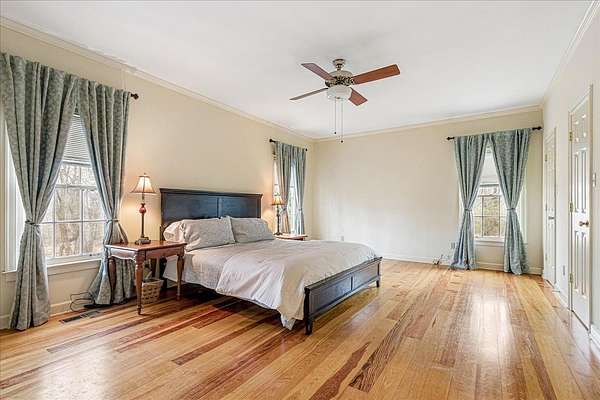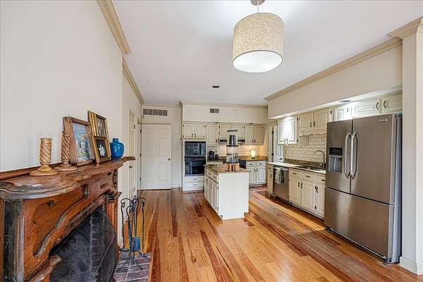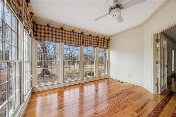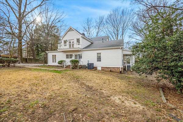 Classic Southern Living style 4 bedroom/3.5 bathroom home located on 4.26 acres with no city taxes! Roof & seamless gutters installed in 2018, new HVAC in 2025, conventional foundation professionally encapsulated. Newer oversized three car garage with separate storage room and attic. Enter the home through the stained glass front door and enjoy the abundant natural light and beautiful Carribean Heart of Pine hardwood floors throughout the downstairs. Stay warm & cozy with two fireplaces in the kitchen & living room. If you like to entertain, you'll love the two ovens and abundant workspace in the kitchen which flows into the hearth area and dining room. When the weather is nice, you can open the french doors and walk out onto the deck, or sit on the wraparound porch and enjoy the view! The lot backs up to a creek and has ample room for a pool, a large garden-the only limit is your imagination! Adjacent 9.65 acre parcel available for sale- MLS number 10213631.