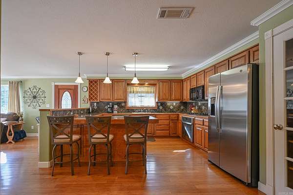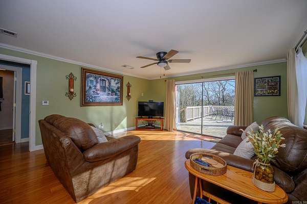 A rare opportunity to own a turnkey, income-producing property with direct access to the outdoors. Fully furnished, single-story brick home is an established short-term rental with documented rental history, 2 bedrooms and 2 bathrooms and an inviting open floorplan. The kitchen features granite countertops, new stainless steel appliances, abundant cabinetry, and generous counter space, flowing seamlessly into the living area. A separate dining room with coffered ceiling adds both charm and functionality. The spacious primary retreat includes a fireplace, while crown molding and ceiling fans enhance comfort and style throughout. Outdoor amenities include a deck off the living room overlooking the creek and an outdoor pavilion ideal for BBQs and gatherings. 2-car garage, newer metal roof, situated on 1.51 scenic acres. Direct ATV trail access--no trailering needed. Approximately 7 miles from the South Trailhead of Wolf Pen Gap Trails, with extensive National Forest access and year-round outdoor recreation. All furnishings and appliances convey, allowing for seamless continuation of short-term rental operations.