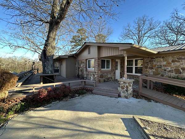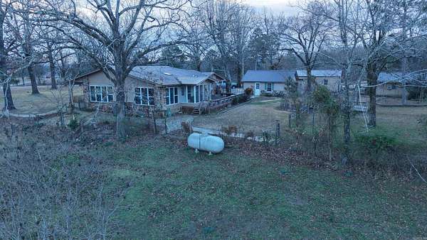 This rural Arkansas property offers privacy, usability, and a peaceful country setting on approximately 5+- mostly cleared acres with mature shade trees and abundant wildlife. A scenic watering pond enhances the park-like atmosphere, and the property includes access to a nearby 5+- acre lake for fishing and outdoor enjoyment. Additional acreage is available for expansion. The property is well improved with both a private well and rural water. The main home offers approximately 2,621+- square feet of living space with abundant natural light, four bedrooms, and three full bathrooms. A sauna adds extra comfort and relaxation. A separate guest house provides space for visitors or potential rental use. Additional improvements include a large shop with two car bays, an extra workshop for hobbies or business use, and a greenhouse for year-round gardening. This versatile property combines usable land, water features, quality improvements, and a quiet Arkansas country setting, making it ideal for a full-time residence, recreational retreat, or investment with room to grow.