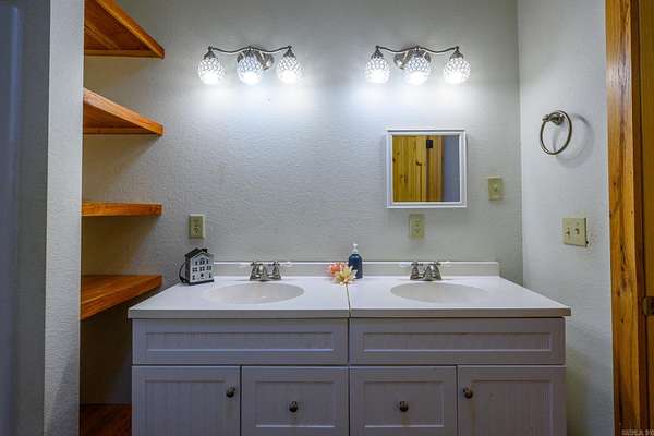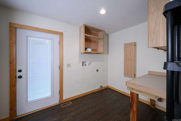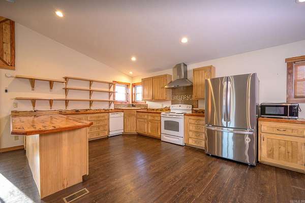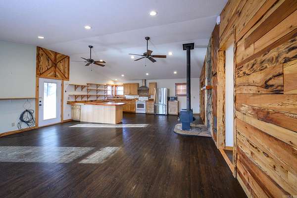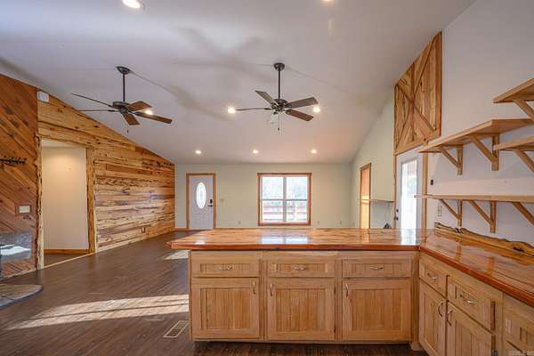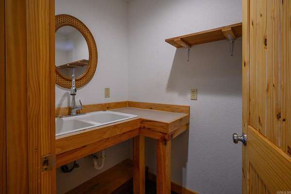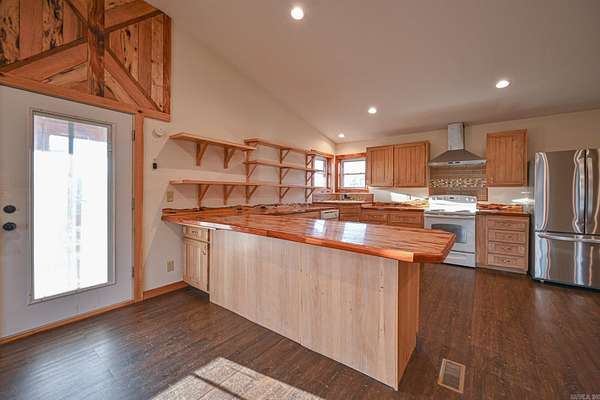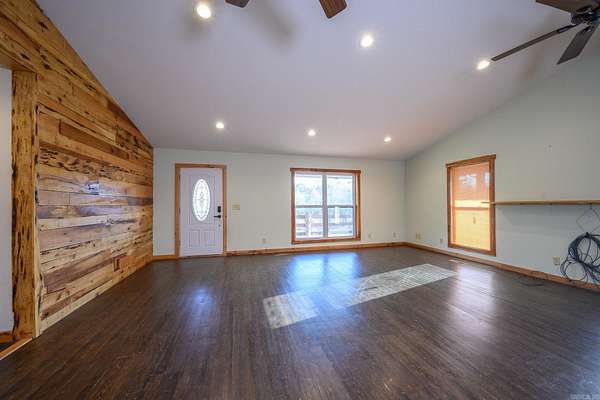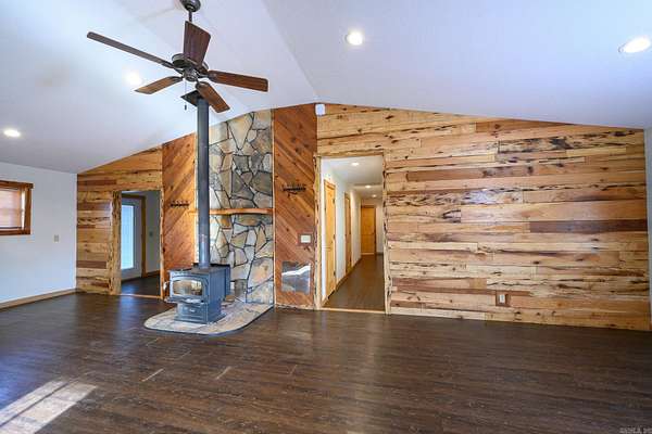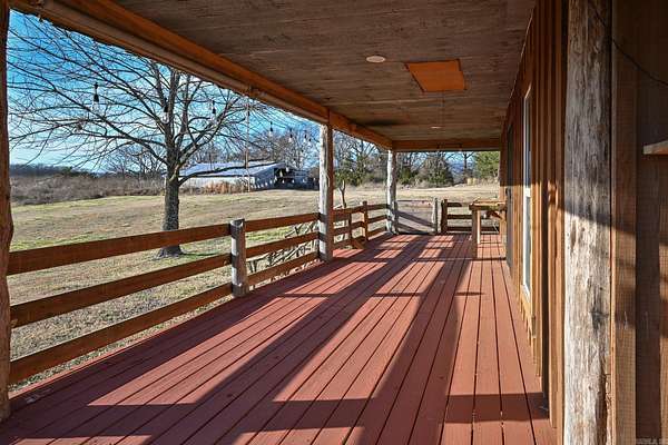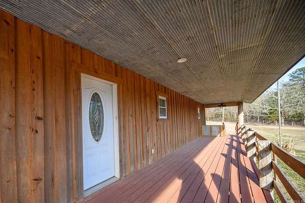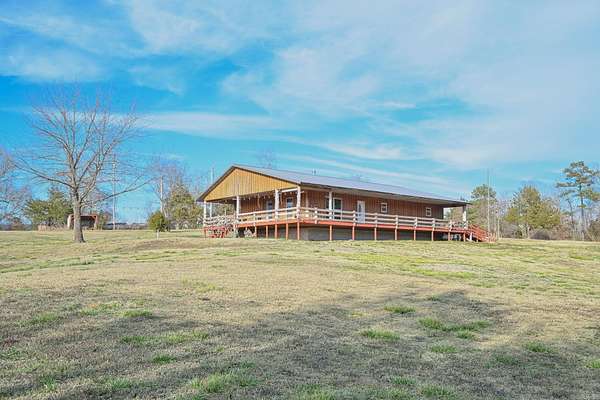 Looking for a beautiful country home with VIEWS and privacy? Take a look at this SPACIOUS 3 bedroom rustic country cabin on 10 picturesque acres with a seasonal creek! The home features a wraparound gated porch inviting you to relax and take in the peaceful surroundings. Inside, you'll see an attractive open floor plan, vaulted ceilings and a wood burning stove complete with rock hearth! With spacious bedrooms, walk in closets, a custom rock shower, and jack & jill sinks in the primary bathroom, this home has been thoughtfully designed with attention to functionality and rustic charm. Throughout the home there are several cedar walls and impressive live-edge trim throughout. The large kitchen features a custom wood backsplash and rich wood countertops. The very spacious laundry room and pantry include a half bath, water heater closet, and convenient access to the large crawl space below. A 40x60 metal open shop offers endless possibilities. Across the creek, a gravel pad is already equipped with septic, water, and electric. Outdoor enthusiasts will appreciate the property's close proximity to the Ouachita National Forest, ATV trails, and The Mountain Bike Trails!