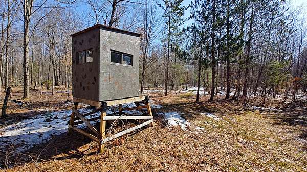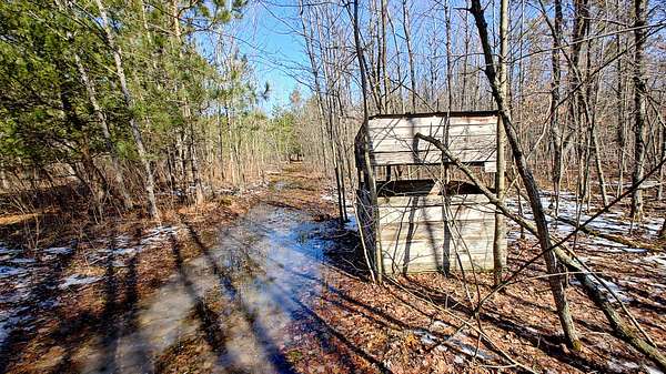 Turnkey and ready for immediate use, this well-equipped deer camp offers everything you need. The 13.39 +/- acre property features a cozy cabin with kitchen, living area, bathroom, and bunk space--ideal for hunting trips or weekend stays. Equipped with electric and a hand-pump well, it's both functional and convenient. Set up for success, multiple blinds overlook established food plot locations. The land offers excellent habitat diversity with hardwoods, pines, and grassy meadows, attracting deer, turkeys, and other wildlife. Bordering Manistee National Forest, you'll have direct access to endless recreational opportunities including hunting, ORV trails, fishing, and hiking--all just minutes away.