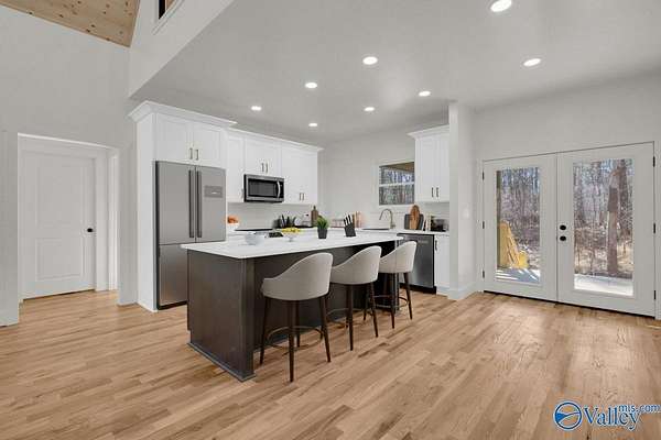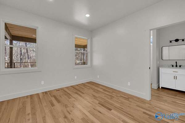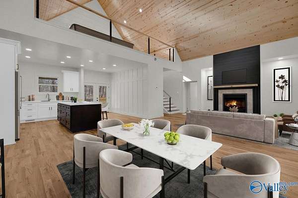 Nestled 350 feet deep within a tranquil forest, this beautifully constructed home offers an unparalleled blend of privacy and serenity. Upon arrival, you are greeted by an inviting covered front porch, perfect for enjoying peaceful moments in nature. Stepping through the front door, you are immediately struck by the breathtaking vaulted gable ceilings, adorned with tongue and groove details. The open-concept design seamlessly integrates the living space with a gourmet kitchen, featuring a spacious island embellished with elegant quartz countertops. To the left, the primary bedroom serves as a retreat, complete with a spa-like bathroom. Photos are virtually Staged.