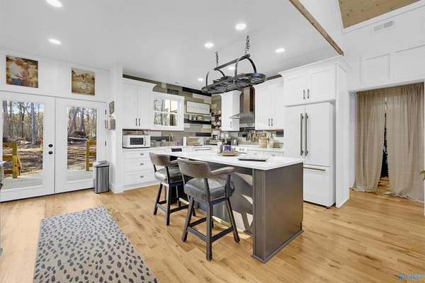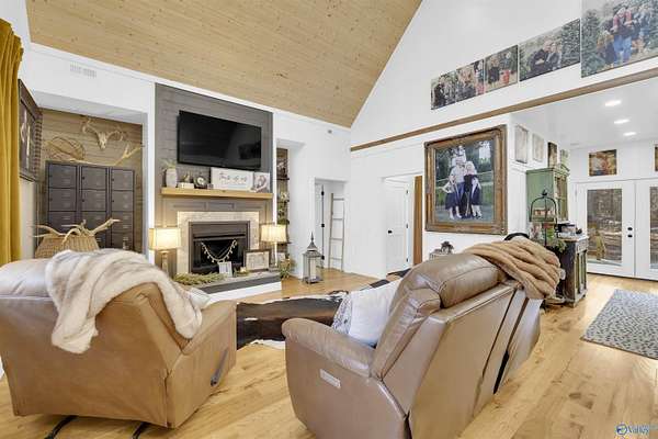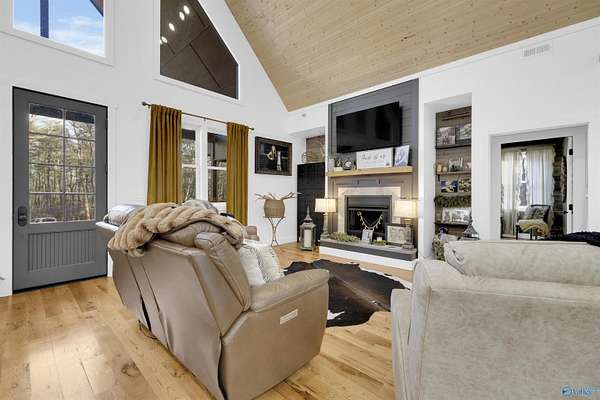NESTLED on EAGLE'S NEST in NORTHBEND Subdivision! This high point location offers seasonal VIEWS of the brow from their own backyard, and the convenienent distance to Brow Park (0.8 mile), downtown Mentone (1.1 mile) and Mentone Market (1.3 mile) and other nearby locations. Beautifully accented with a tall vaulted ceiling, transom windows, wood floors, kitchen island, farmhouse sink, chef's dream appliance package, separate pantry, decorative fireplace and so much more character. The primary suite has custom wood walls, soaking tub and tile glass shower. Come and enjoy the massive porches for relaxing or entertaining. All situated at the end of the road on 2.26 acres.