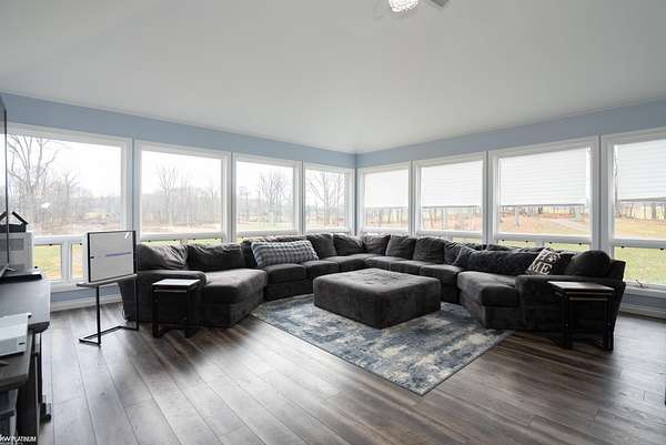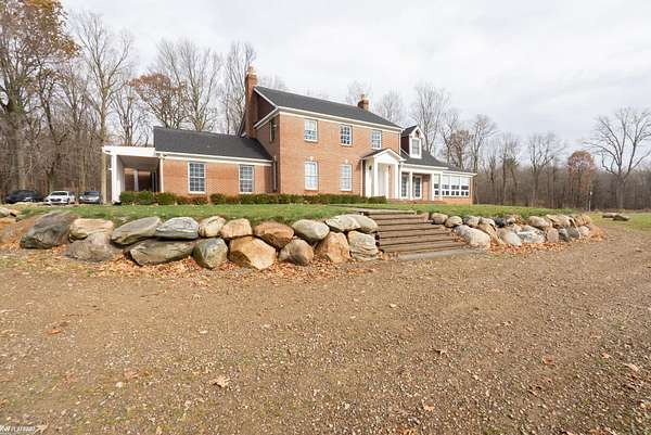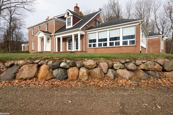 Welcome to the heart of Metamora Hunt Country! This expansive, all-brick home offers the privacy and space you've been searching for, nestled on 11 rolling acres teeming with wildlife and perfect for future outbuildings or pastures. Inside, hardwood floors flow throughout spacious rooms ideal for entertaining. The large kitchen and bright sunroom provide stunning views and abundant natural light. Relax by any of the three fireplaces located in the family room, living room, and primary bedroom. The home features two primary suites, one on each floor, and a Jack and Jill bathroom for the additional two upstairs bedrooms. With ample parking, a 3-car garage, and numerous recent upgrades, including a new roof (2016), efficient geothermal heat/air (2012), updated garage doors, paver walkways, retaining wall, and door walls (2018), this home truly has it all.