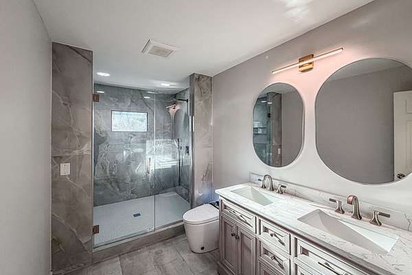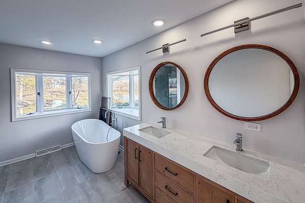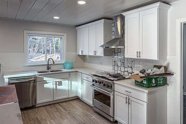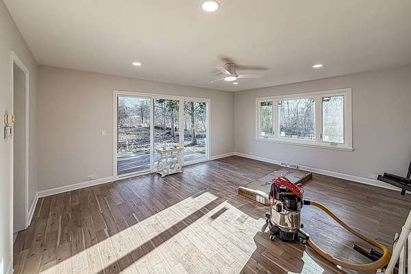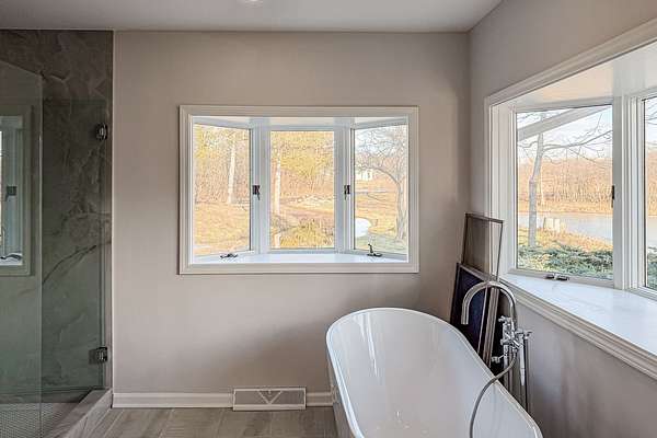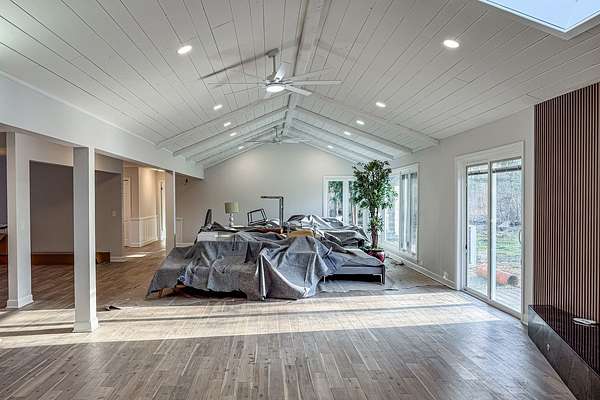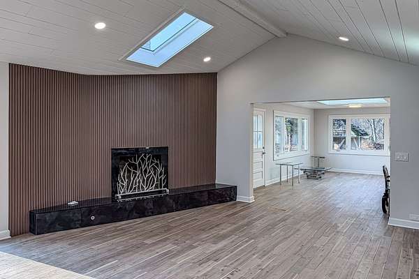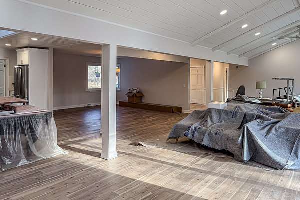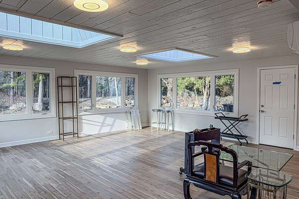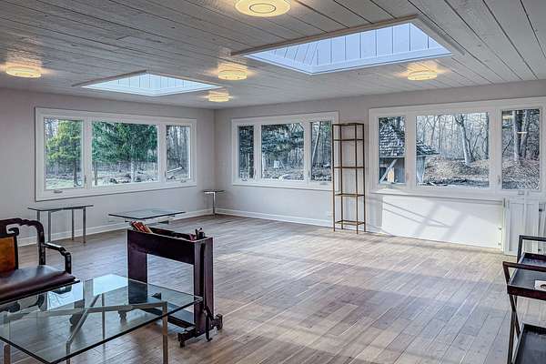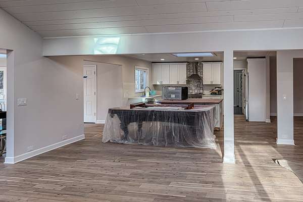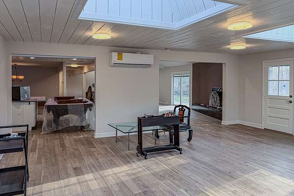 Will be completely upgraded throughout! This exceptional estate is truly one of a kind! Set back on nearly 5 private acres with a serene pond and mature trees, this sprawling ranch offers close to 4,000 sq. ft. of living space with 5 bedrooms, 3.1 baths, and a full basement. The chef's kitchen is a showstopper-featuring quartz countertops, a large island with breakfast bar, abundant white cabinetry, and a stunning skylight that fills the space with natural light. The inviting living room boasts vaulted ceilings, a striking fireplace, and access to the expansive deck-perfect for entertaining or relaxing outdoors. The open-concept dining room seamlessly connects the kitchen and living room, making it ideal for gatherings. The family room is surrounded by windows, creating a bright and airy atmosphere that enhances the home's spacious feel. Every bathroom has been beautifully updated with new vanities, flooring, and fixtures. The full basement offers endless possibilities for additional living space, recreation, or storage. Main level laundry adds everyday convenience. An attached 3-car garage and circular driveway completes this impressive property. Step outside, walk the grounds, and experience the peace and privacy this estate provides-you won't find another property like this at such an incredible value. Don't wait, this one won't last long!