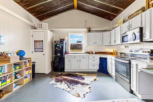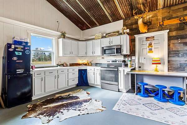The property features two spaces, the main home currently has 1 bedroom and 1 bath, and a slab ready for you to finish and make your own. Plumbed for another bath and 2 more bedrooms or use your imagination! The guest quarters is currently used as a school house, but has a full kitchen and loft for a fully functioning second living space. This ranch has endless opportunities to handle a lot of horses or livestock with 80 acres! With ample space to expand you have the freedom to create your dream homestead, add more livestock, or simply enjoy the vast landscape. Whether you want to farm or ranch or you are simply seeking a tranquil environment and escape the hustle and bustle of city life, this property is an amazing find. Don't miss out on your chance to own this incredible farm and ranch retreat! Schedule a viewing today and start living the lifestyle you've always dreamed of.