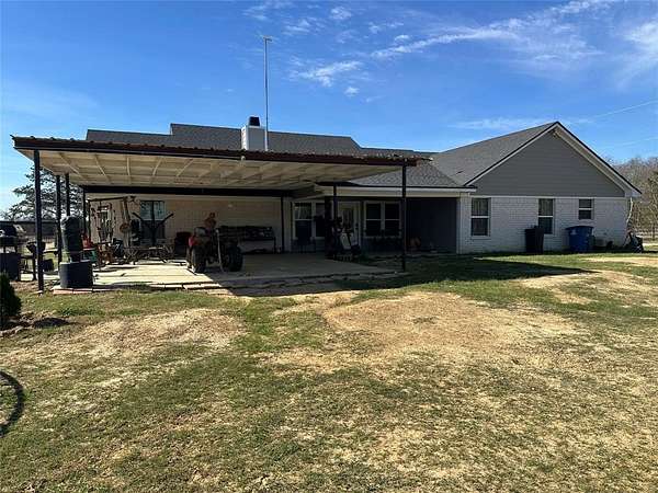 Nice Newer Home on 3 Fenced Acres Close to Town. Four Bedroom - Two Bath - The large covered front porch has an exquisite front door that opens to a grand entry with a formal dining room to the left and a spacious open concept throughout. The gourmet kitchen includes a propane gas stovetop, large vent-a-hood, kitchen island with a small prep sink, farmhouse sink, barn door to a walk-in pantry, space for breakfast table, and a bar surrounding the kitchen and open to the large vaulted living area with stone corner fireplace. The primary suite is separated from the other three bedrooms and has a very nice ensuite bathroom with a soaking bathtub, separate walk-in shower with seat, dual sinks, and a huge walk-in closet with built-ins. There is plenty of room in this home that extends to the exterior with a ton of outdoor living space including an expanded patio that is big enough to park two cars if you wish, or since you already have an enclosed two car garage with storage above - you can just use this space to enjoy the outdoors. Toward the back of the property you will find an extra large chicken coup, storage container, and a barn area that is currently used for an ag project animal. The property boast a grand gated entry with pipe rail fencing that surrounds the entire 3 acres.