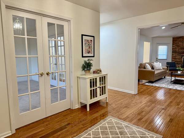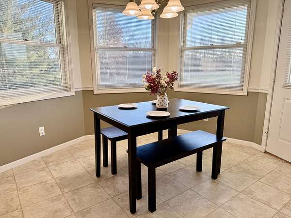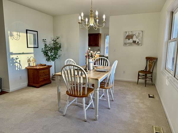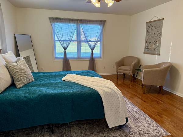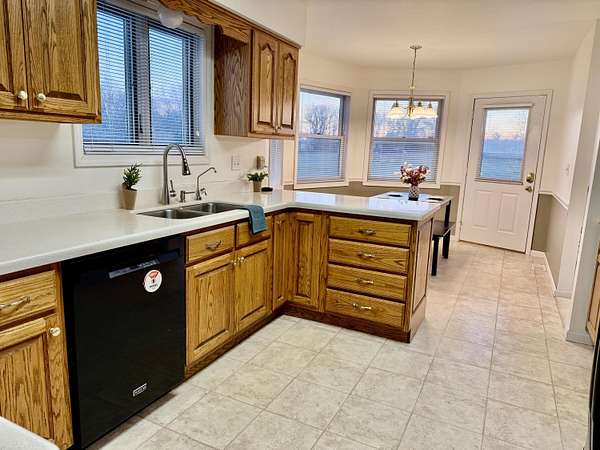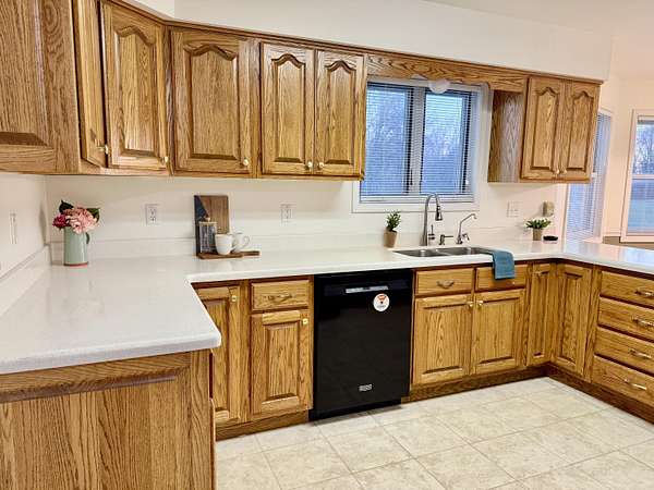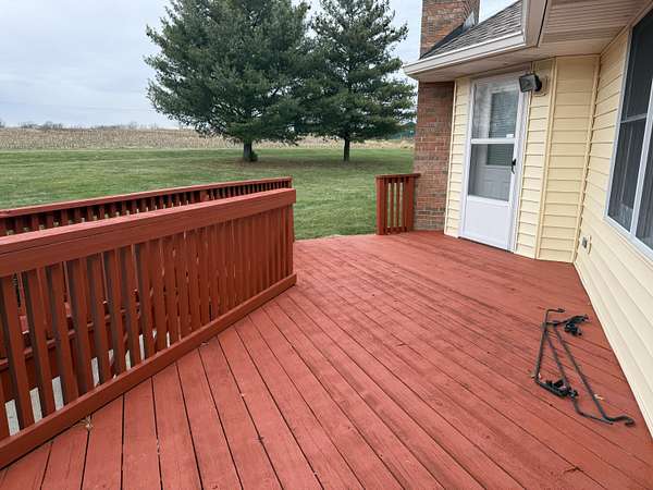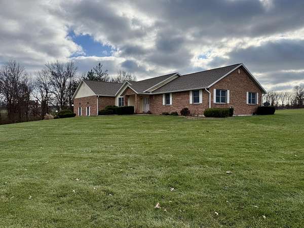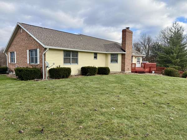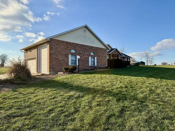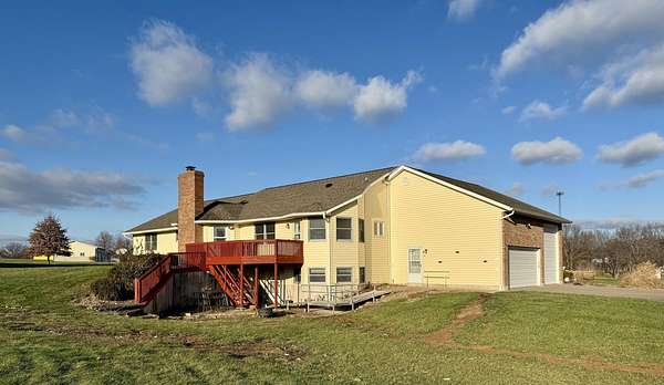 Enjoy country living on a private paved road right at the edge of town. There's plenty of space to grow and play here. This country home has beautiful views of cornfields from the back windows, and the private paved road helps keep things clean. When you walk in, you'll notice hardwood floors and vaulted ceilings in the living room and a spacious office at the front. The north side has three main bedrooms, and the primary bedroom comes with its own bathroom and a bidet. On the south side, you'll find another large living room with a fireplace, a formal dining area, an eat-in kitchen, and a laundry room. Downstairs, there's a finished living area, an optional non-conforming fifth bedroom with a full bathroom, a big recreation space, and a large unfinished area with hookups for an extra kitchen if you want one. The ground-source heat pump keeps the home energy-efficient year-round. Outside, you can watch the sunset from the back deck or patio. If you have an RV, the attached garage has plenty of parking. This home is one you'll want to see for yourself.