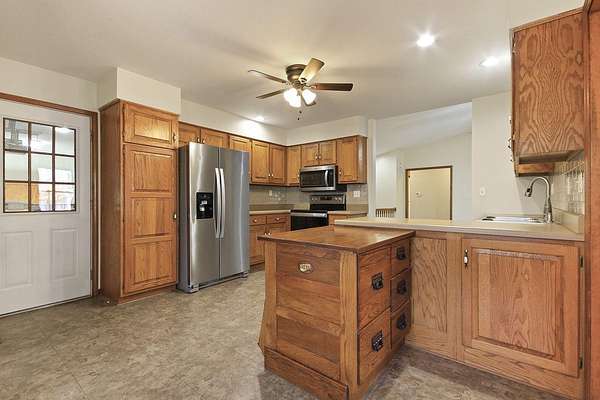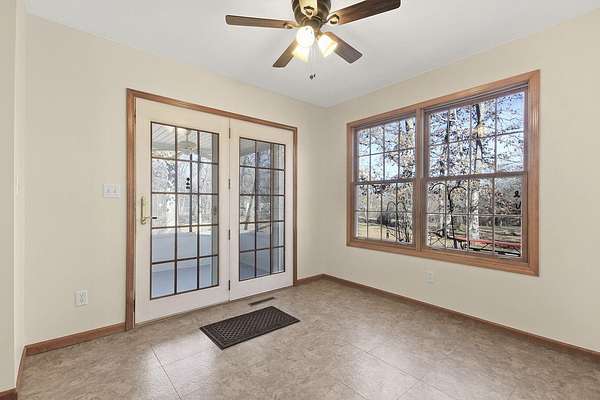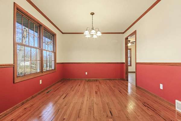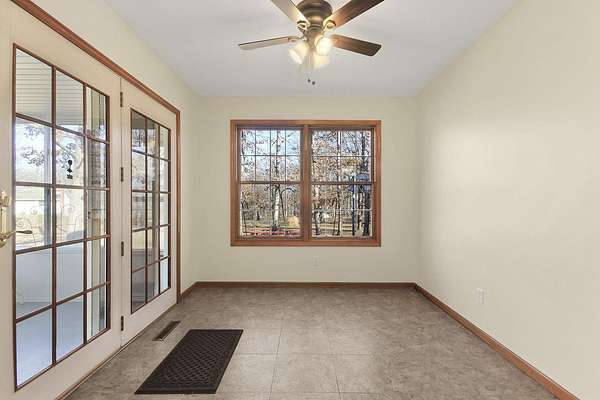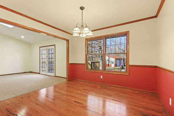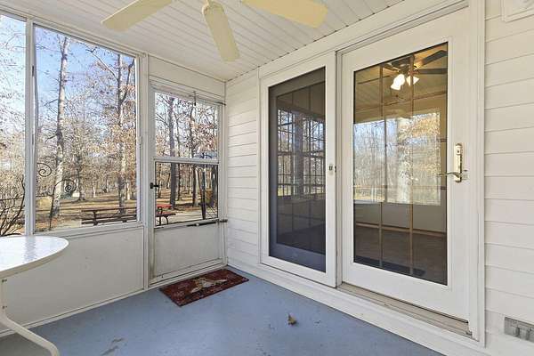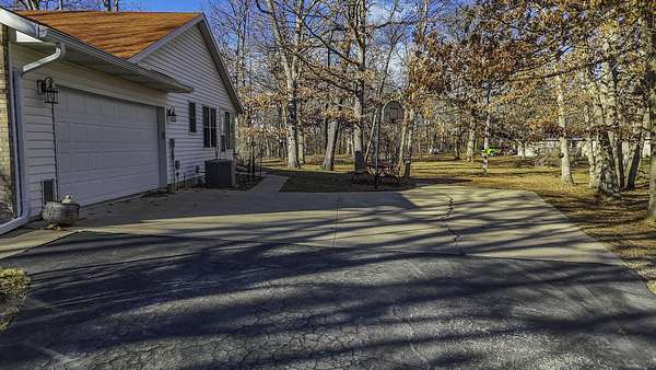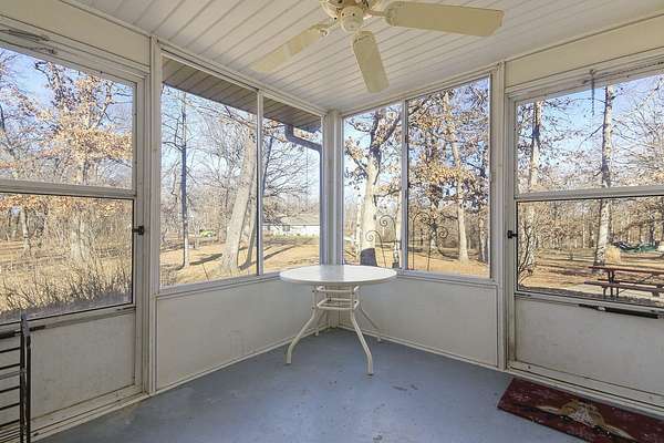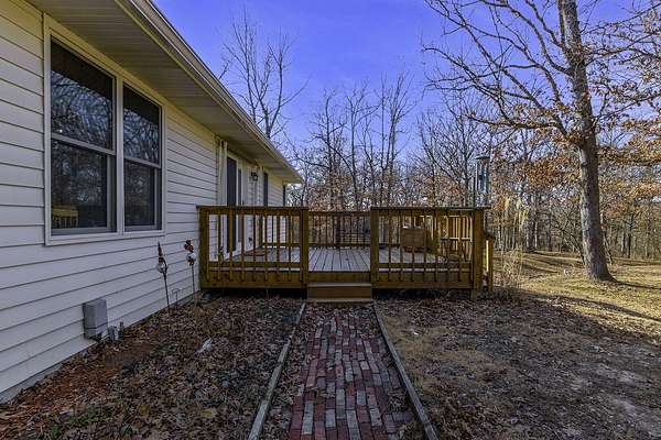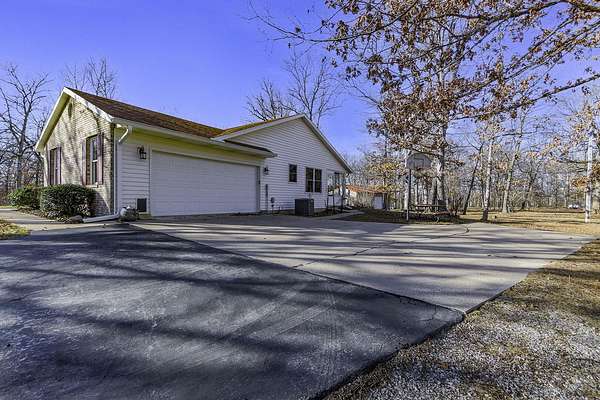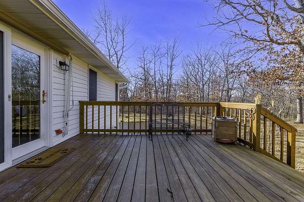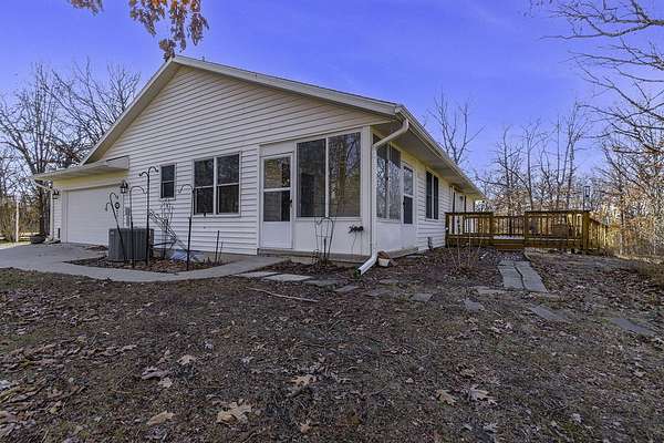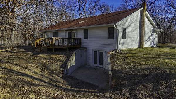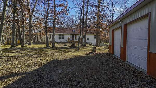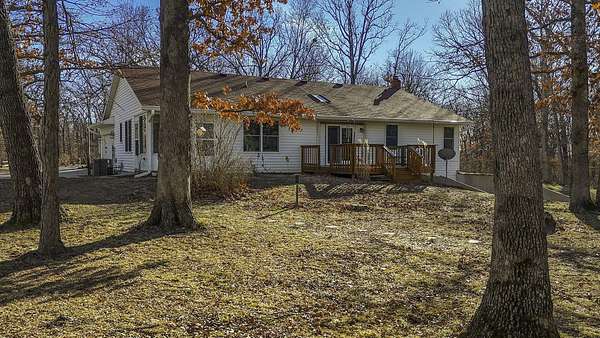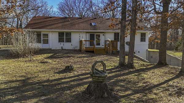COUNTRY LIVING AT IT'S BEST! 3-4 bdrm ranch home situated on over 4 acres, offering a peaceful wooded setting on a quiet gravel road. This move-in-ready home features new flooring & fresh paint. The primary bedroom has a private 3/4 bath with an updated onyx walk-in shower. The vaulted LR opens to a deck overlooking the private backyard, perfect for relaxing or entertaining. The kitchen comes complete w/ all appliances and a dining area that looks out over the enclosed back porch. Main-level laundry includes 1/2 bath for everyday convenience. The walk-out bsmt offers add'l living space w/ a family room, craft room or office, bath, 4th non-conforming bdrm, along with a cozy wood stove & ample storage. Attached 2-car garage and a 24x32 garage/workshop. Don't wait, won't last long!