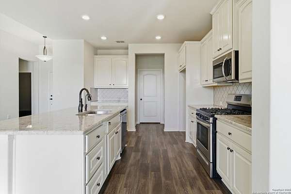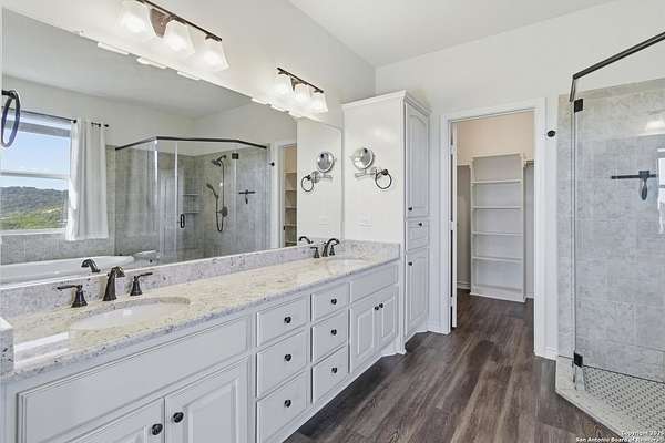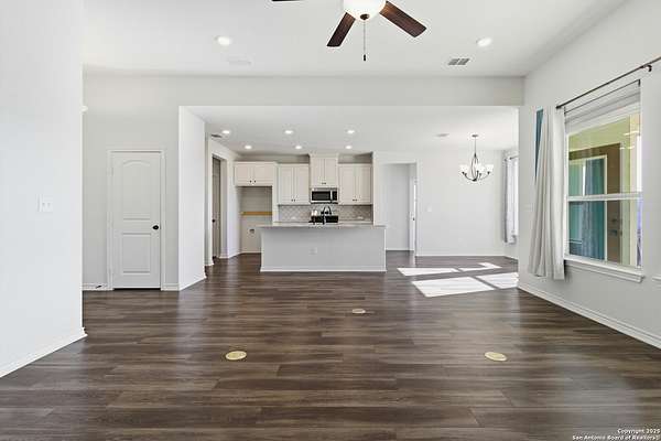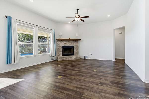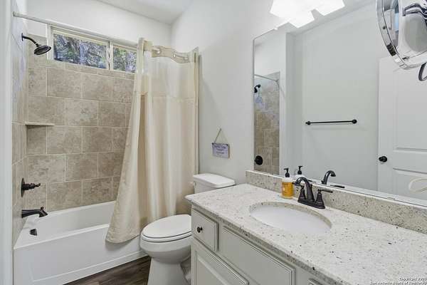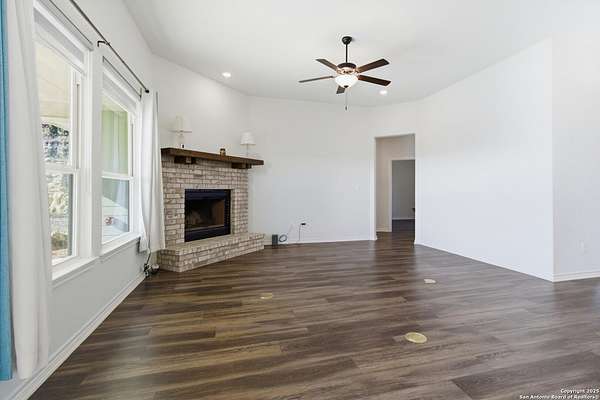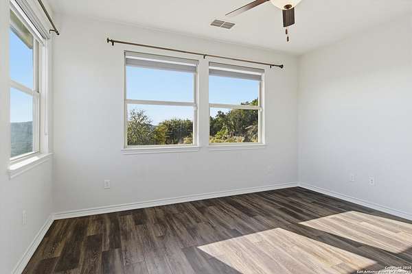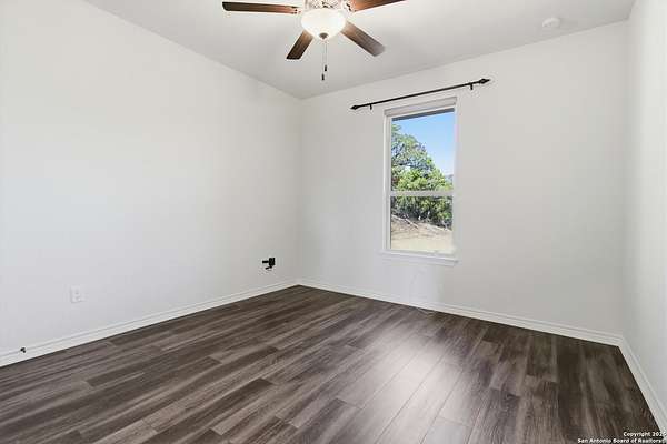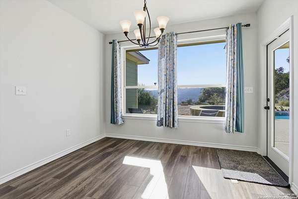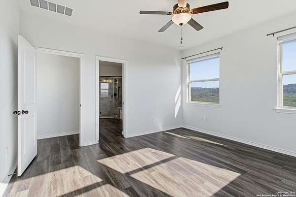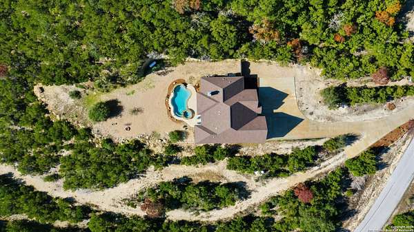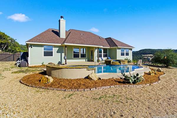 Experience refined Hill Country living in this stunning one-story contemporary home built in 2022, ideally situated on 3.7 private acres within the prestigious Dancing Bear Ranch community overlooking Medina Lake. Designed to seamlessly blend modern comfort with breathtaking natural surroundings, this residence offers sweeping Hill Country views that can be enjoyed from nearly every vantage point. The thoughtfully designed floor plan features 4 spacious bedrooms, 2.5 baths, and an oversized 2-car garage, all on a single level for effortless living. Clean architectural lines, abundant natural light, and quality finishes define the home's contemporary aesthetic while maintaining a warm, inviting atmosphere. Step outside to your private outdoor oasis, complete with a heated pool and hot tub-perfect for year-round enjoyment while taking in the panoramic Hill Country scenery. Whether entertaining guests or enjoying quiet evenings under the stars, this setting delivers both tranquility and sophistication. Residents of Dancing Bear Ranch enjoy an exceptional array of amenities, including a resort-style pool, sports court, basketball court, clubhouse, lake access, fishing pier, and more-offering an unmatched lifestyle surrounded by nature and recreation. This is a rare opportunity to own a nearly new Hill Country retreat that combines privacy, modern design, and community amenities in one of the area's most sought-after lakefront neighborhoods.